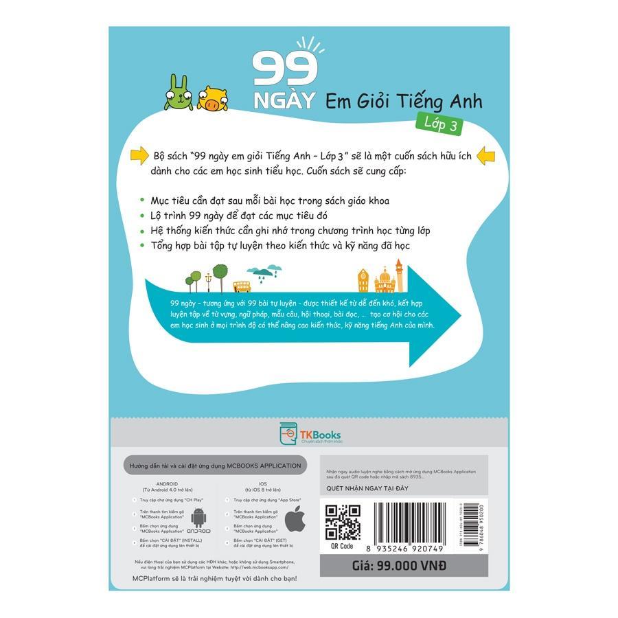 99 ngày – tương ứng với 99 bài tự luyện - được thiết kế từ dễ đến khó, kết hợp luyện tập về từ vựng, ngữ pháp, mẫu câu, hội thoại, bài đọc, tạo cơ hội cho các em học sinh ở mọi trình độ có thể nâng cao kiến thức, kỹ năng tiếng Anh của mình.