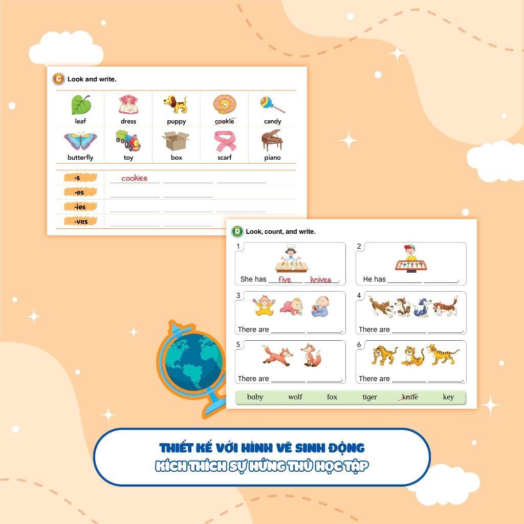 - Phần ôn tập ở cuối mỗi chương được thiết kế để tích hợp tất cả các bài học mà các con vừa học, giúp bố mẹ có thể kiểm tra, đánh giá năng lực của các con.