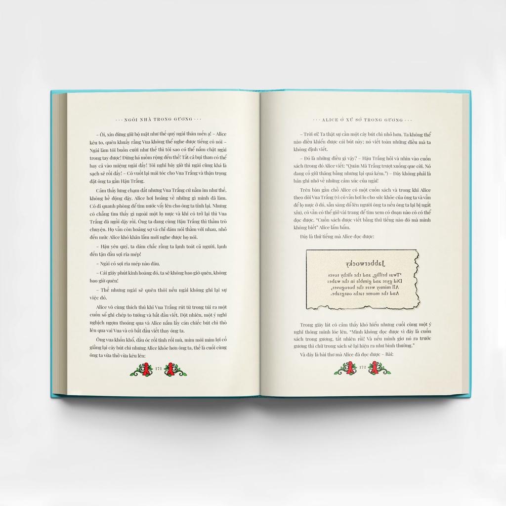 Với lần tái bản này, Alice ở xứ sở diệu kì & Alice ở xứ sở trong gương của Lewis Carrol đã trở lại với một diện mạo hoàn toàn mới. Những hình minh họa hoàn toàn mới cùng các trò chơi tương tác độc quyền từ studio thiết kế MinaLima sẽ mang đến một chuyến đi trở về tuổi thơ cho độc giả ở mọi lứa tuổi.