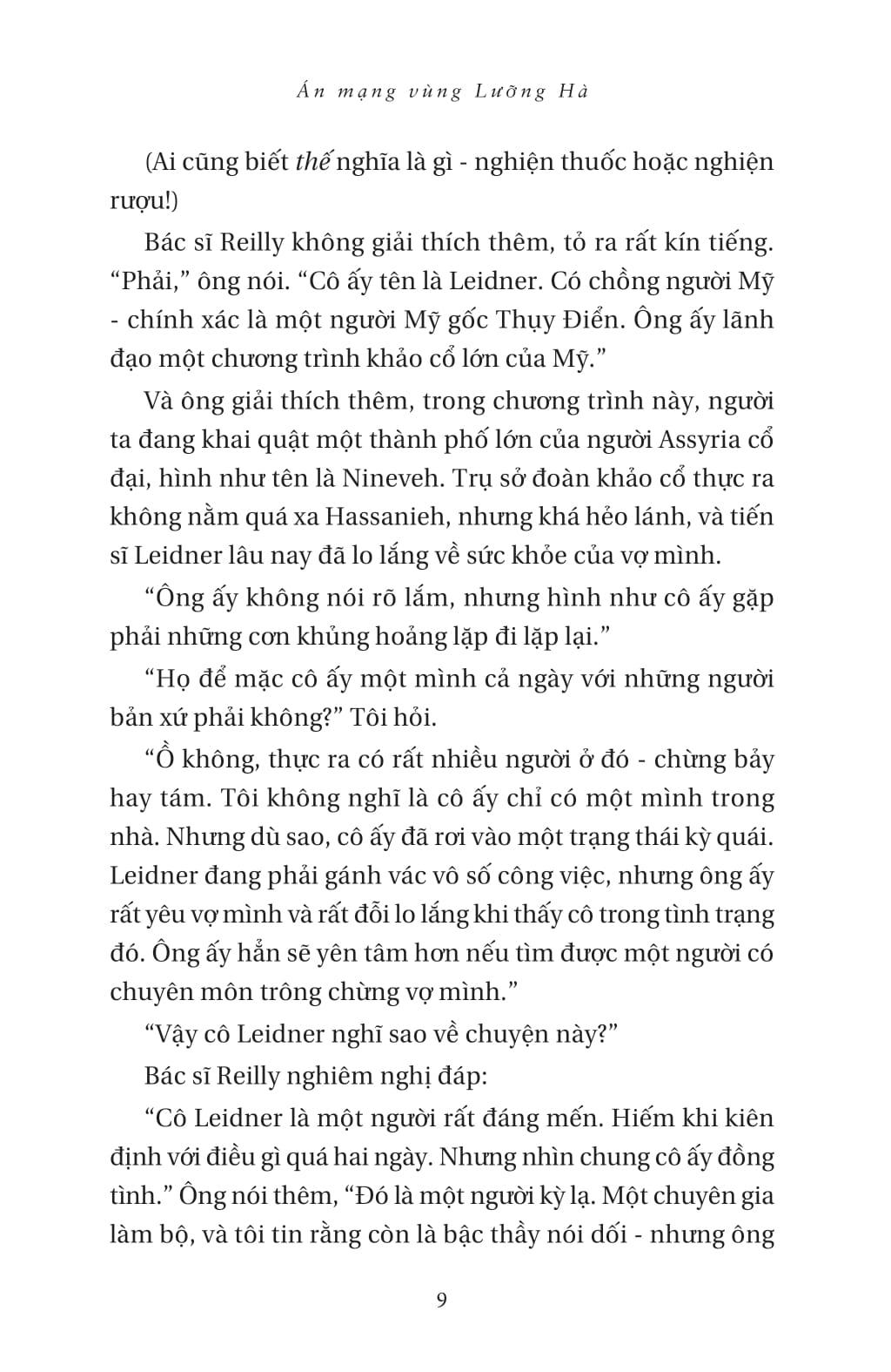 Câu chuyện lấy cảm hứng từ những lần Agatha Christie tham gia vào các cuộc khảo cổ ở phương Đông cùng với chồng m.ình - Max Mallowan. Những chất liệu từ kinh nghiệm thực địa đã giúp Christie tạo nên bối cảnh đặc biệt cho Án mạng vùng Lưỡng Hà, và một cái chết được sắp đặt tài tình đến không ngờ.