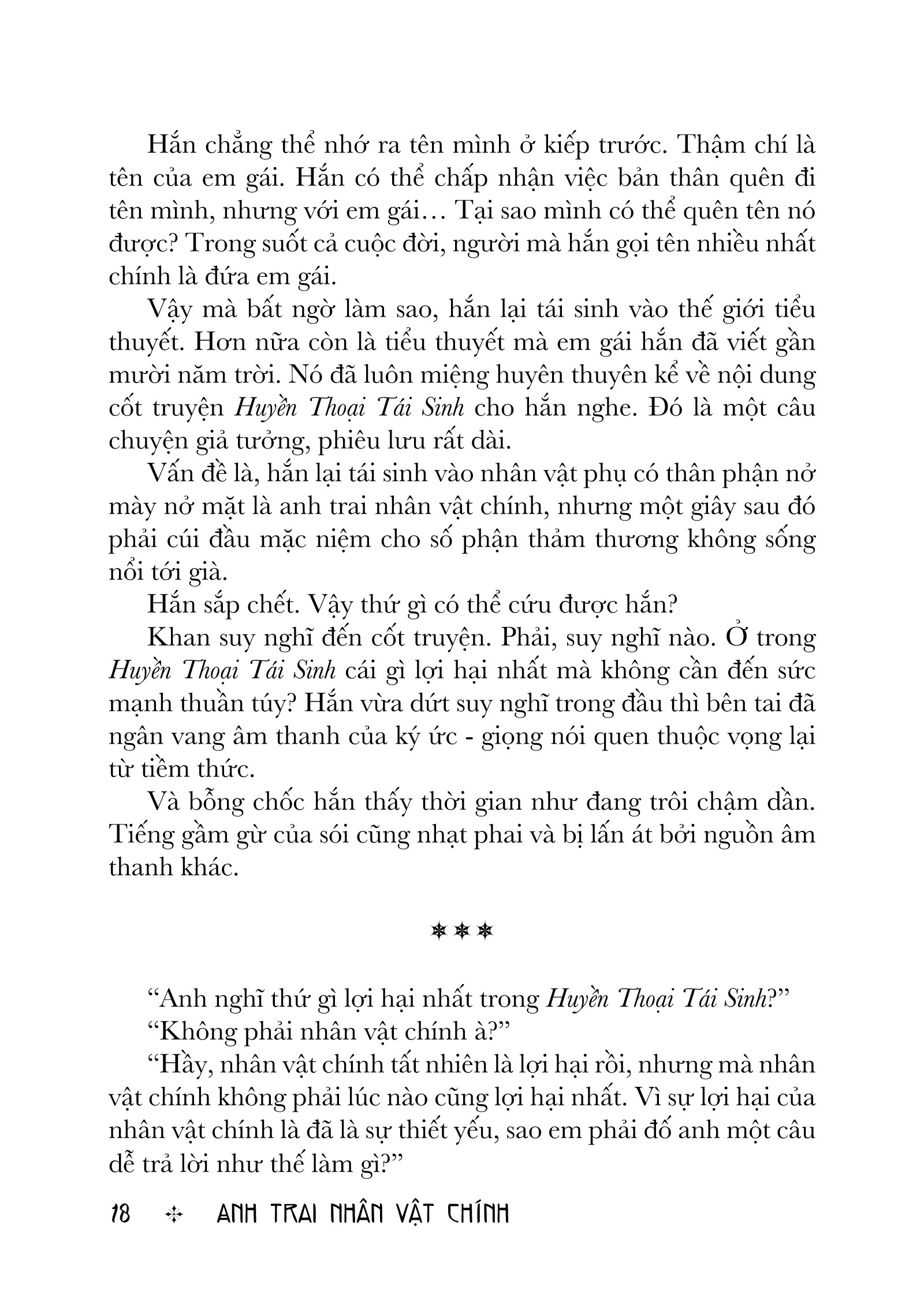 “Huyền Thoại Tái Sinh” là cuốn tiểu thuyết em gái của Khang viết ra, nhưng không rõ vì lí do gì, hắn lại tái sinh thành một nhân vật phản diện không quan trọng trong bộ truyện có tên là Khan Evangeline, anh trai của nhân vật chính - Saul.