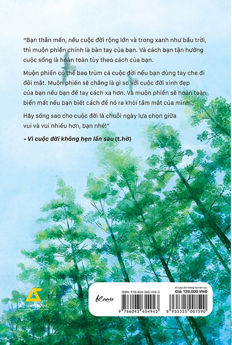 Vì cuộc đời không hẹn lần sau là quyển sách tập hợp những mẩu chuyện kể không của riêng ai, đằng sau mỗi câu chuyện là một một lời động viên tích cực, một niềm tin vững chãi gửi gắm đến mỗi cuộc đời đang tồn tại.
