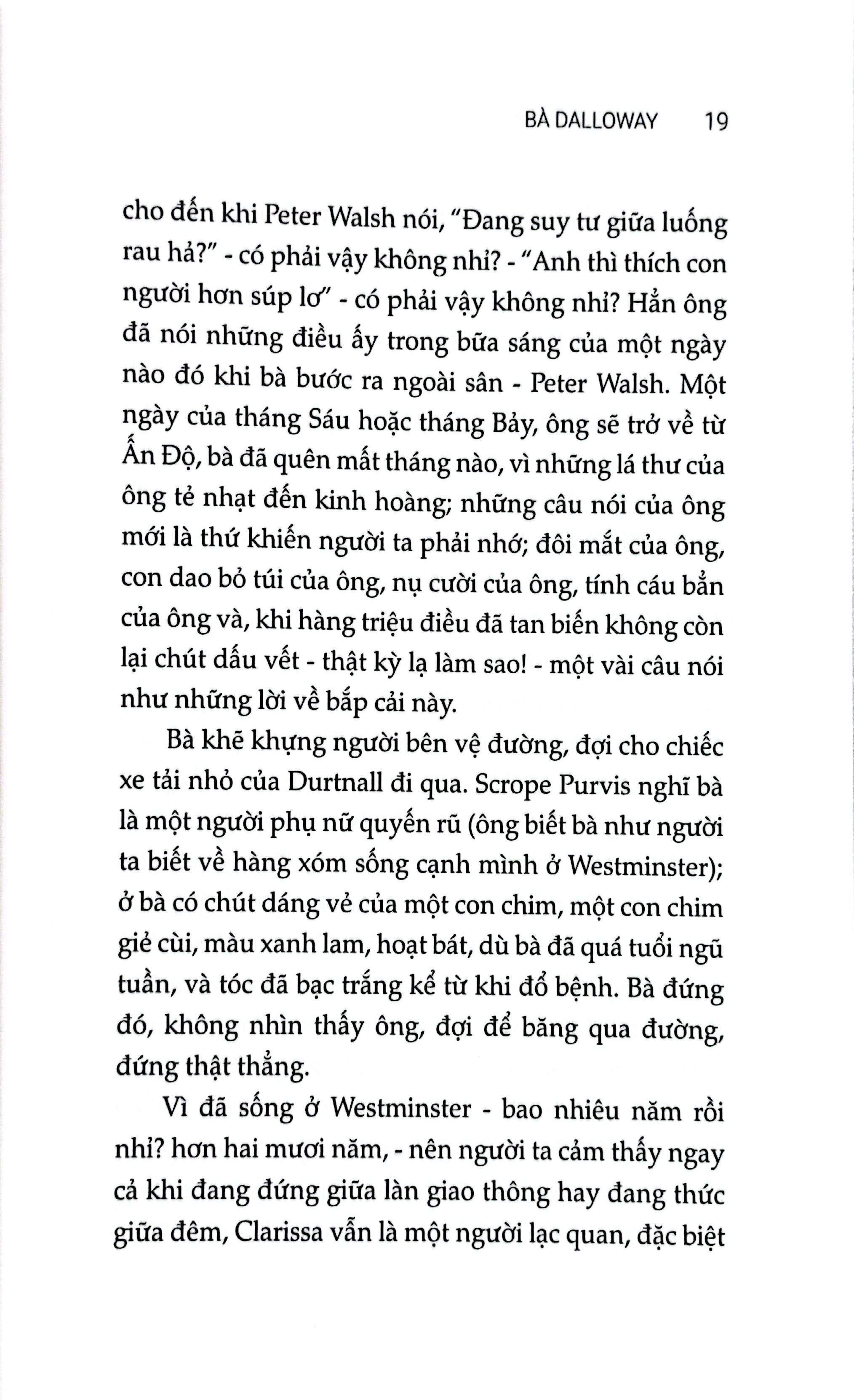 Như chính Virginia Woolf đã nói: “Nhà văn thả vào từng con chữ trong các tác phẩm của m.ình những bí mật thẳm sâu trong tâm hồn, những trải nghiệm cuộc sống và cả đạo đức của họ.” Bà Dalloway là như thế.
