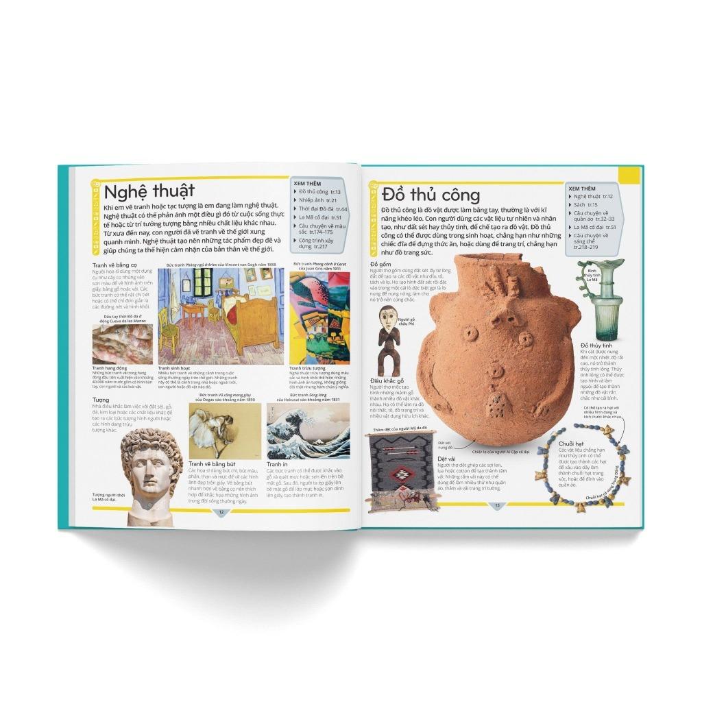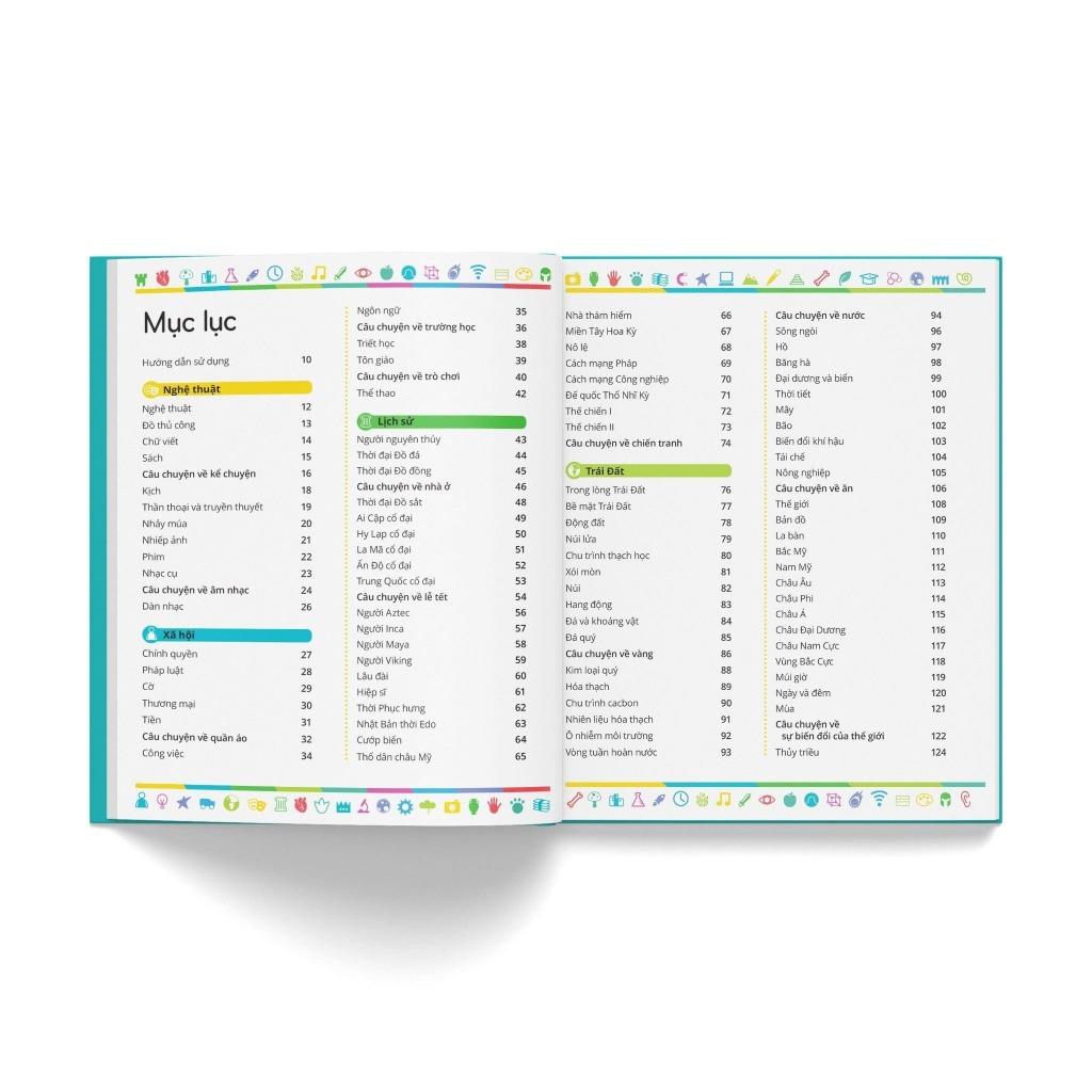 Luôn nằm trong top sách bán chạy và được cập nhật kiến thức mới nhất, Bách khoa thư trẻ em – Cuốn sách lí giải vạn vật có lối trình bày mạch lạc, khoa học, là cuốn sách thiết yếu cho mọi tủ sách thiếu nhi. Mở đầu, phần “Hướng dẫn sử dụng” sẽ khái quát cuốn sách cũng như giúp các bạn đọc nhỏ tuổi thuận tiện trong việc đọc và tra cứu. Tiếp đó, nội dung được chia thành chín lĩnh vực gồm nhiều chủ đề, mỗi chủ đề gói gọn trong một trang đơn. Chẳng hạn, lĩnh vực Công nghệ nói về cách hoạt động của máy bay, ; lĩnh vực Vũ trụ giải thích hố đen là gì, ngôi sao hình thành và chết đi ra sao… Xen kẽ là các trang đôi diễn giải một chủ đề theo tư duy liên kết giữa các lĩnh vực, như “Câu chuyện về mật mã” thuật lại lịch sử của mật mã (ra đời, phát triển…) và cách sử dụng mật mã Mỗi trang cũng có ô “Xem thêm” liệt kê các chủ đề liên quan với chủ đề đang đề cập. Cuối sách là phụ lục gồm danh sách các nhà khoa học, cây sự sống, bản đồ thế giới… Đặc biệt, phiên bản tiếng Việt này còn có danh sách các quân chủ và triều đại Việt Nam. Sau cùng là phần “Từ vựng” giải nghĩa từ khó và “Chỉ mục” để tra cứu các chủ đề.
