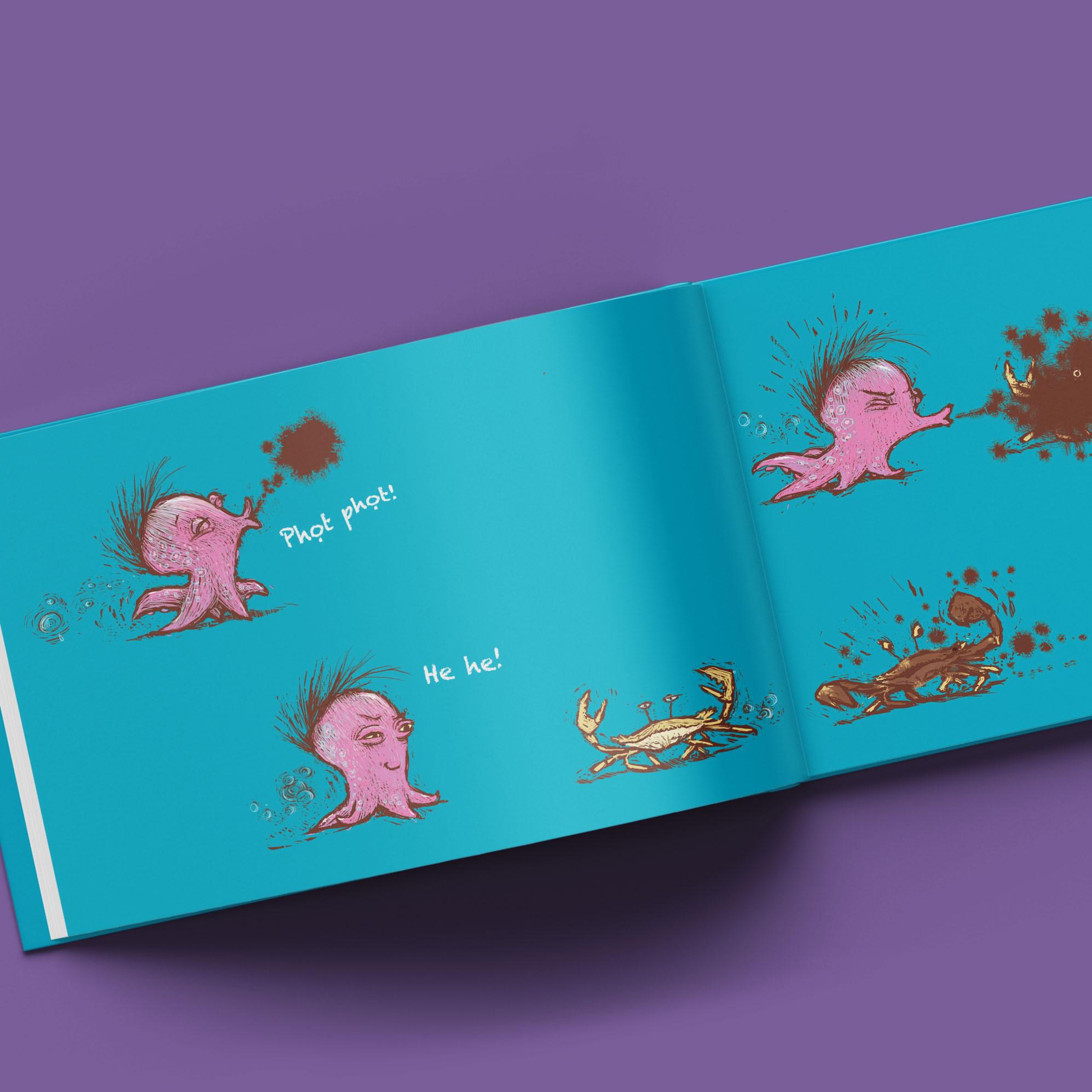 Bạch Tuộc Phụt Mực Phi Phàm Bạch Tuộc con được mẹ chỉ cách bước đi hiên ngang, bơi lội vẫy vùng, trên hết cả là phương pháp hữu hiệu giúp xua đuổi kẻ thù. Thế nhưng chú chàng lại tìm ra một trò mới hay tuyệt diệu kia!