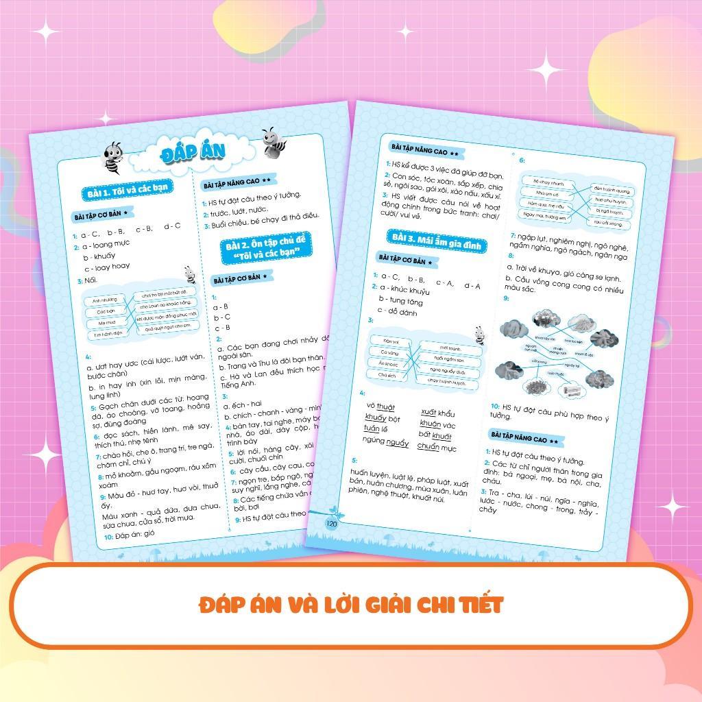 Phần đáp án chi tiết ở cuối sách giúp phụ huynh và các con có thể tự đối chiếu và đánh giá sau khi hoàn thành bài tập, từ đó có phương pháp ôn luyện phù hợp cho con.