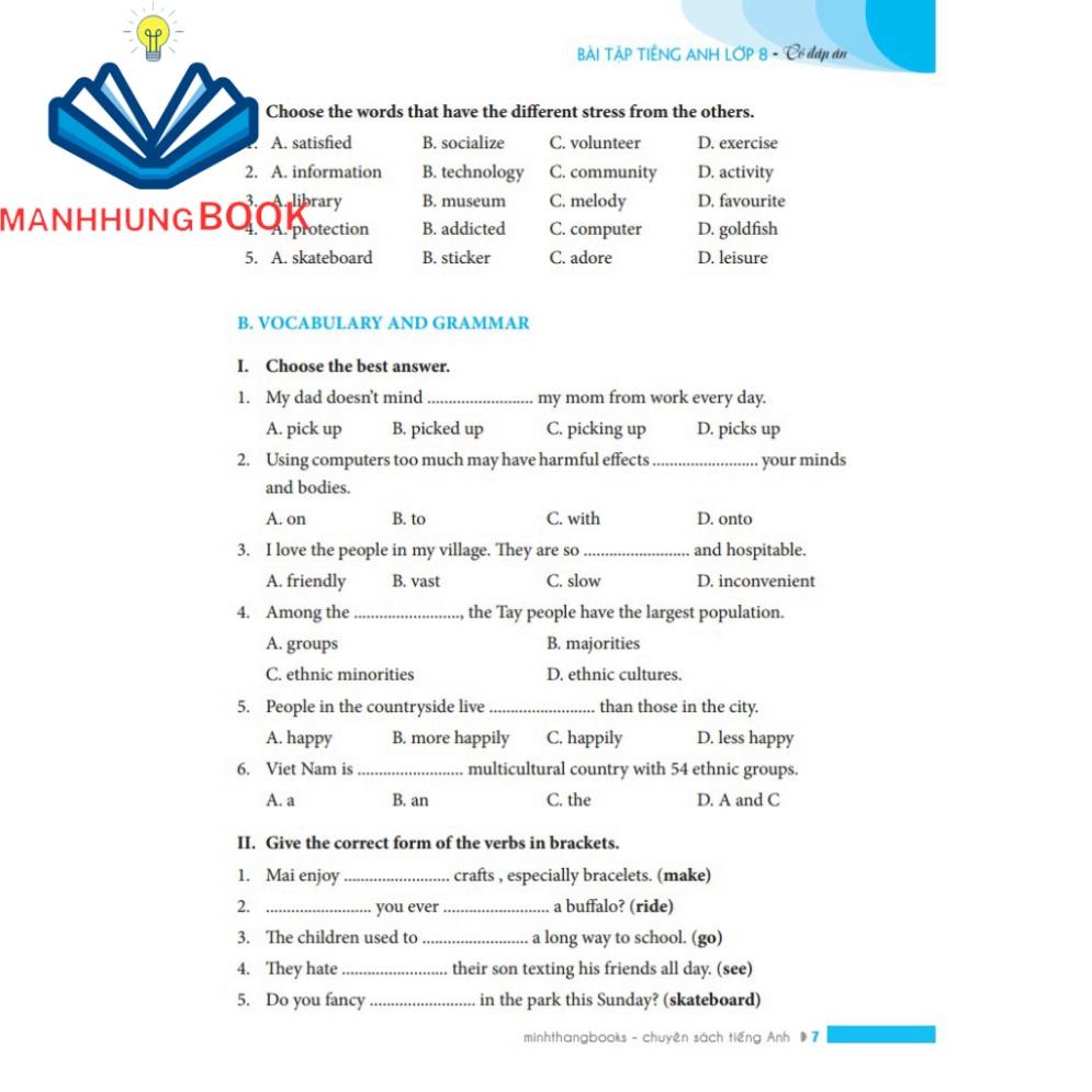 Sách Bài tập Tiếng Anh lớp 8 được biên soạn dựa trên thực tiễn của việc dạy và học tiếng Anh. Đây là nguồn tài liệu tham khảo bổ ích cho giáo viên và học sinh và rất thiết thực trong giao lưu quốc tế nhằm nâng cao khả năng sử dụng ngôn ngữ tiếng Anh trong thời kỳ hội nhập.