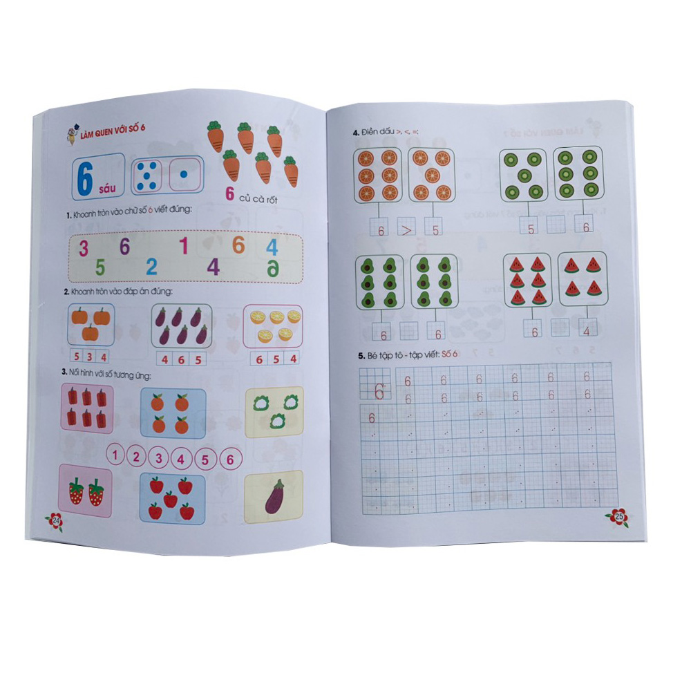 - Phần 2: Nhận dạng số từ 1-10, cách đếm từ 1-20, phân biệt các dấu lớn, nhỏ, bằng