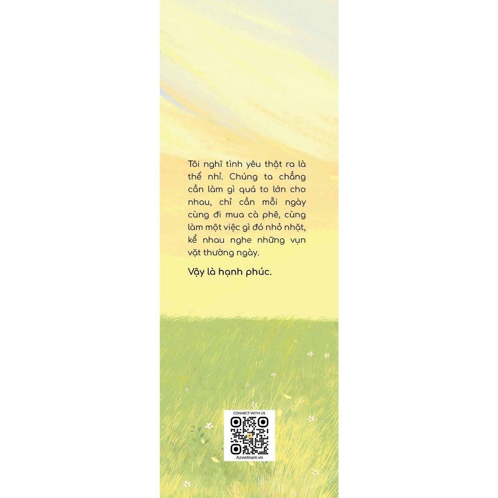 Cuốn sách sẽ cho bạn thấy được những khía cạnh, dáng vẻ khác của tình yêu. Chúng không chỉ có cảm xúc nồng nhiệt, rung động mà còn là trạng thái bình yên và thoải mái, bao dung và chấp nhận, giận hờn nhưng không làm tổn thương đối phương… Dù sau này có thể không bước tiếp cùng nhau, nhưng chúng ta đều sẽ trưởng thành hơn, học cách yêu bản thân nhiều hơn.