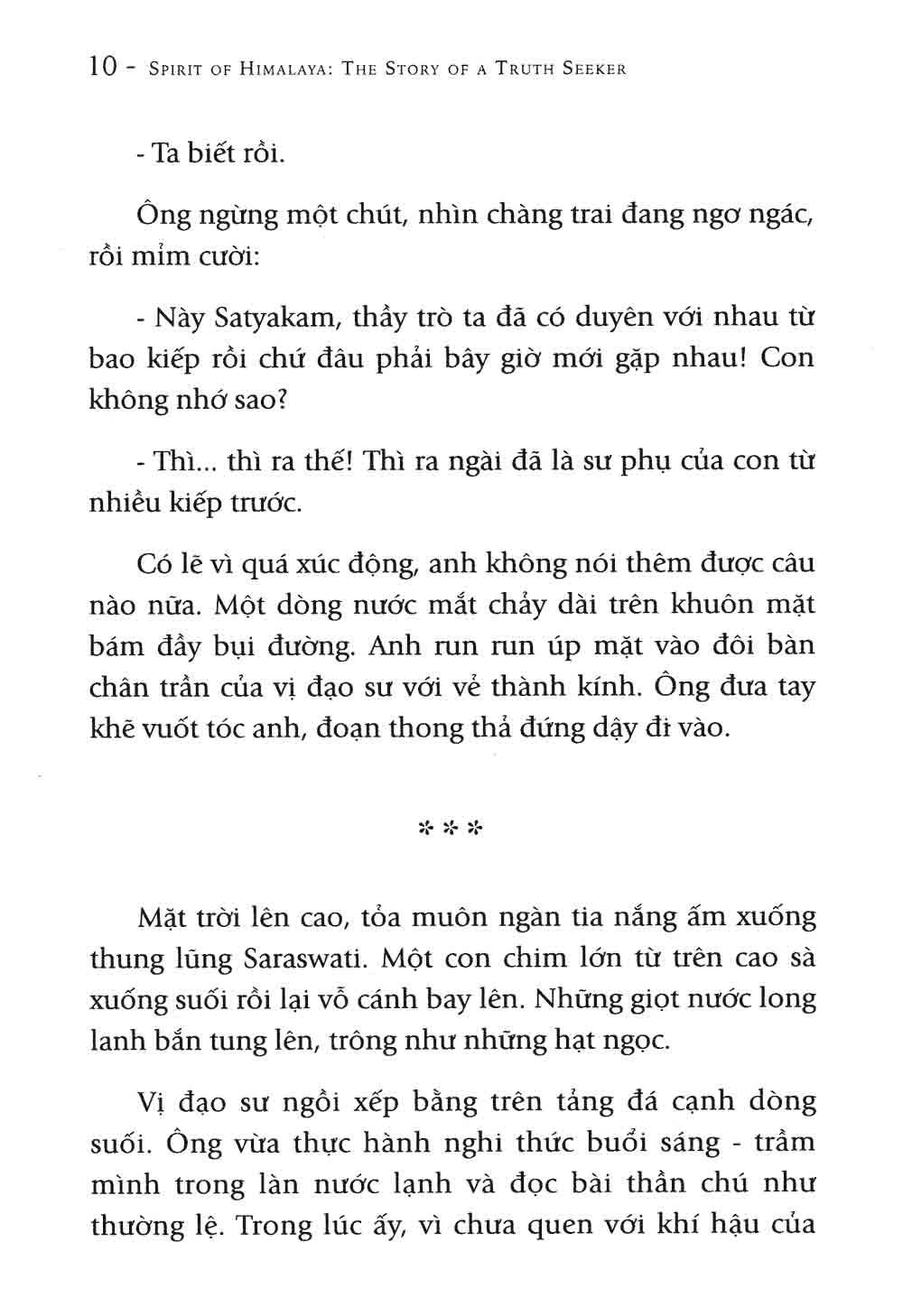 Dài học đầu tiên của Satyakam là quên đi thời gian. Việc này nghe qua tưởng chừng như đơn giản nhưng khi bắt đầu thực hiện lại không đơn giản chút nào. Cũng như việc lắng nghe những âm thanh của vũ trụ như tiếng lá rơi, tiếng gió thổi, tiếng nước reo cũng không dễ dàng thực hiện nếu trong lòng ta vẫn còn nhiều tạp âm. Chúng ta sẽ được trải nghiệm những giây phút bình yên thông qua chuyến hành trình đi tìm chân lý của Satyakam dưới sự hướng dẫn của vị đạo sư trong dãy núi Tuyết Sơn để hiểu rõ hơn về sức mạnh vĩnh hằng của thế giới tâm linh cũng như khám phá chính tiếng nói nội tâm của bản thân mình.