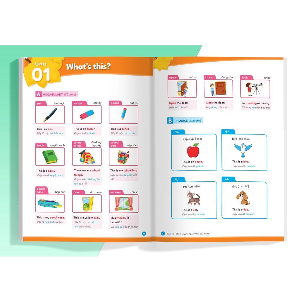 Cuốn sách BIG HERO – Chinh phục tiếng anh theo chủ đề lớp 1, là 1 trong 5 cuốn nằm trong bộ BIG HERO – Chinh phục tiếng anh theo chủ đề, dành riêng cho các bạn học sinh tiểu học từ lớp 1 đến lớp 5.