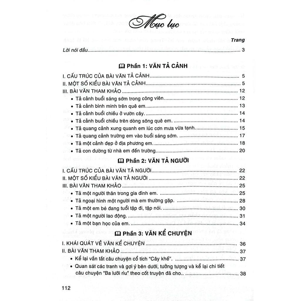 Tuy nhiên văn chương là lĩnh vực của sáng tạo. Vì vậy, các em chỉ nên xem cuốn sách này là một tài liệu tham khảo để đọc, rút kinh nghiệm và ghi nhớ tốt hơn các kiến thức đã học trong phân môn Tập làm văn. Từ đó, phát huy sự sáng tạo của bản thân.