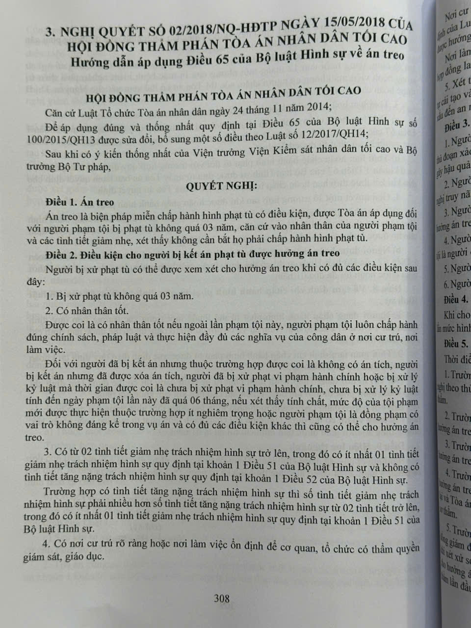– Nghị quyết 03/2024/NQ-HĐTP ngày 10/06/2024 của Hội đồng Thẩm phản Tòa án nhân dân tối cao Hướng dẫn áp dụng một số quy định của Bộ luật Hình sự về thời hiệu thi hành bản án, miễn chấp hành hình phạt, giảm mức hình phạt đã tuyên, giảm thời hạn chấp hành hình phạt trong trường hợp đặc biệt, hoãn chấp hành hình phạt tù, tạm đình chỉ chấp hành hình phạt tù,