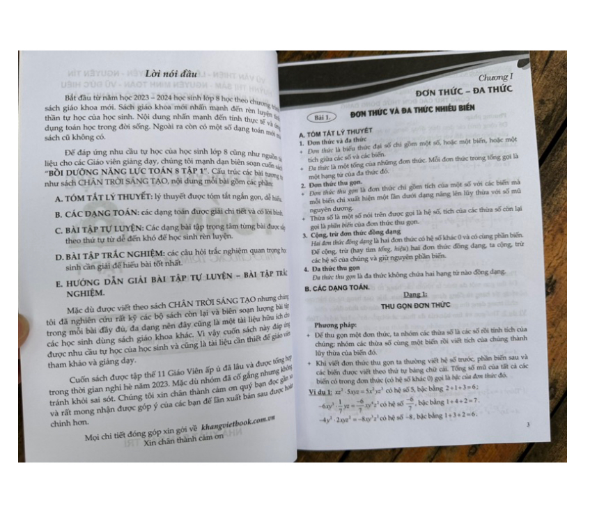 Bắt đầu từ năm học 2023-2024 học sinh lớp 8 học theo chương trình sách giáo khoa mới. Sách giáo khoa mới nhấn mạnh đến rèn luyện tinh thần tự học của học sinh. Nội dung nhấn mạnh đến tính thực tế và ứng dụng toán học trong đời sống. Ngoài ra còn có một số dạng toán mới mà sách cũ không có. Cấu trúc sách gồm: A. Tóm tắt lý thuyết: lý thuyết được tóm tắt ngắn gọn, dễ hiểu B. Các dạng toán: Các dạng toán được giải chi tiết và có lời bình C. Bài tập tự luyện: Các dạng bài tập trọng tâm từng bài được sắp theo thứ tự từ dễ đến khó để học sinh rèn luyện D. Bài tập trắc nghiệm: các câu hỏi trắc nghiệm quan trọng học sinh cần giải để hiểu bài tốt nhất E. Hướng dẫn giải bài tập tự luyện - Bài tập trắc nghiệm Cam kết bảo hành sản phẩm