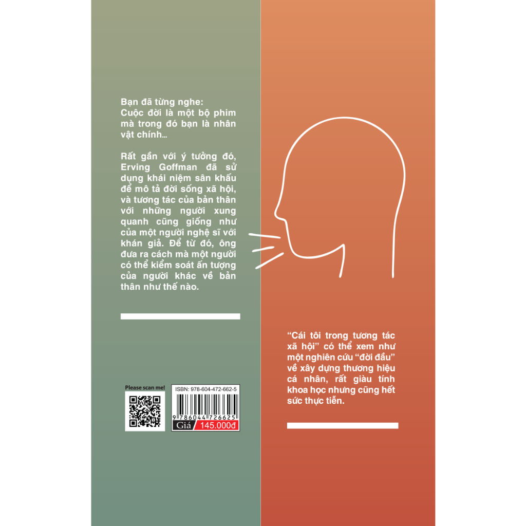 Thể loại: Kỹ năng Tác giả: Erving Goffman Dịch giả: Tôn Quang Toàn Khổ sách: 13,5x 20cm Số trang: 336 Hình thức: Bìa mềm Số ISBN: 978-604-472-662-5 NXB Phụ Nữ Việt Nam Nhà phát hành: Bách Việt Thời gian phát hành: 12/2023