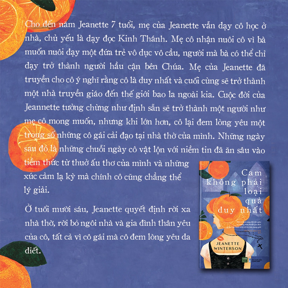 Jeanette Winterson bắt đầu sự nghiệp viết văn khi còn rất sớm và đã giành được giải thưởng đầu tiên với tác phẩm Oganges are not the only fruits vào năm 26 tuổi. Tác phẩm được trao giải thưởng Whitbread danh giá cho Tác phẩm đầu tay xuất sắc nhất. Và Oranges cũng chính là tác phẩm đã đưa tên tuổi của bà đến với công chúng nhiều hơn. Năm 1990, cuốn tiểu thuyết đã được chuyển thể thành phim truyền hình và được trao giải thưởng điện ảnh của Viện Hàn lâm Anh quốc (Bristish Academy of Films and Television Arts).