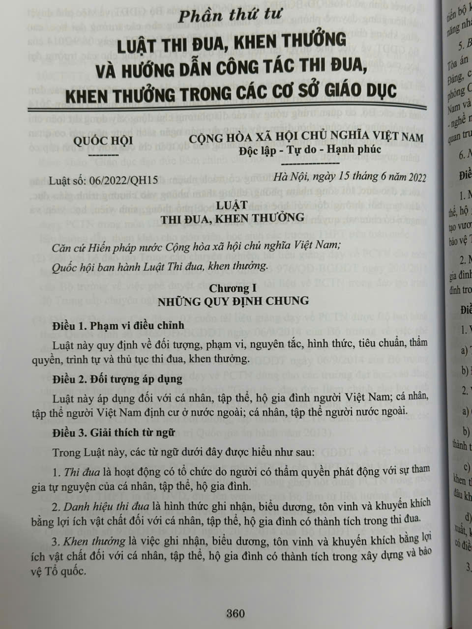 Phần thứ tư. Luật Thi đua, khen thưởng và hướng dẫn công tác thi đua, khen thưởng trong các cơ sở giáo dục