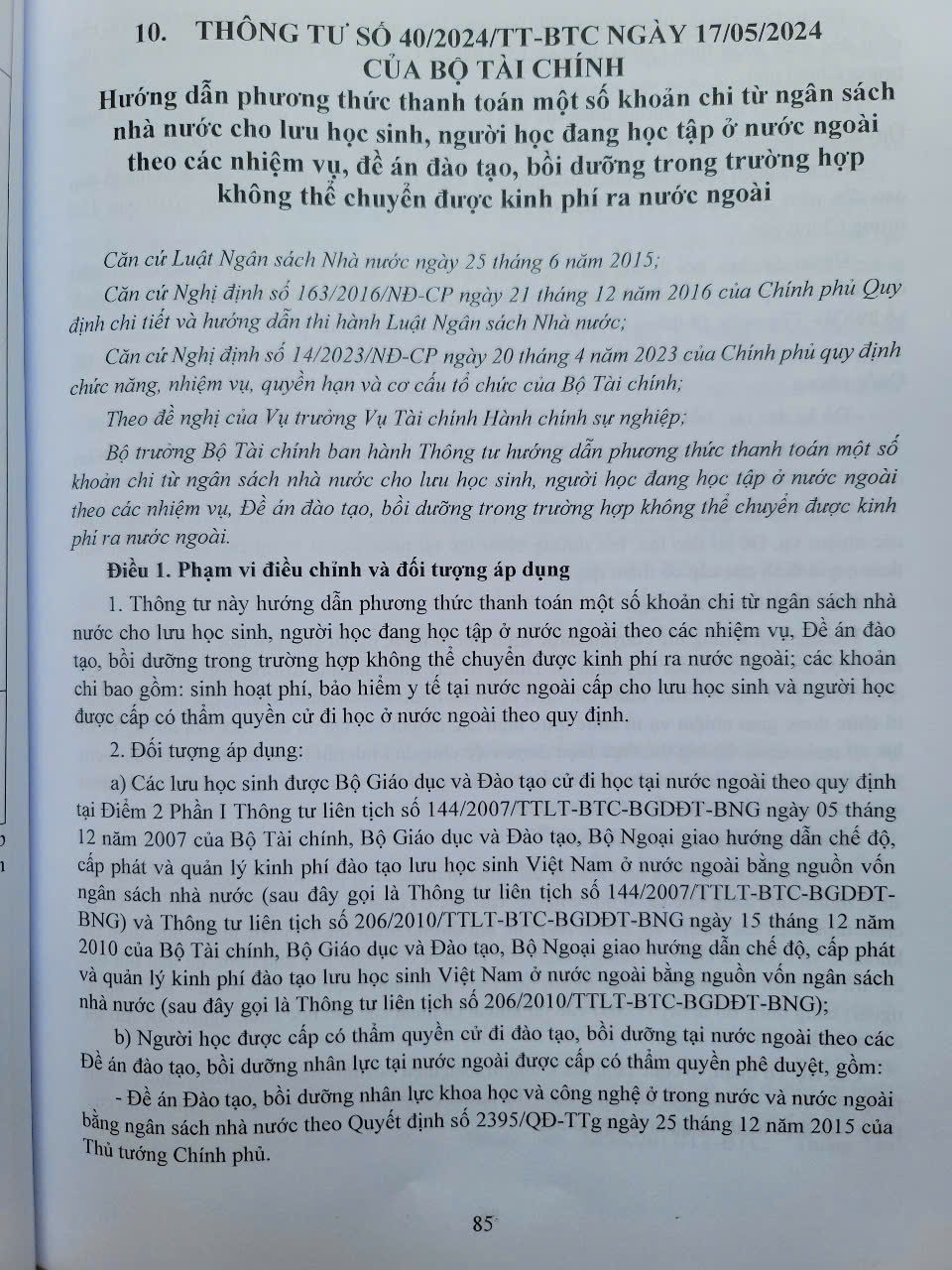 Ngày 26/11/2024, Bộ Tài chính ban hành Thông tư 84/2024/TT-BTC sửa đổi, bổ sung một số điều của Thông tư 324/2016/TT-BTC ngày 21/12/2016 quy định hệ thống mục lục ngân sách Nhà nước đã được
