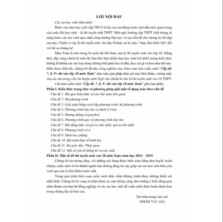 Combo Kĩ Thuật Giải Nhanh Bài Toán Hay Và Khó Đại Số + Hình Học Lớp 10 (Biên Soạn Theo Chương Trình GDPT Mới) (Bộ 2 Cuốn) Các em học sinh lớp 10 thân mến!