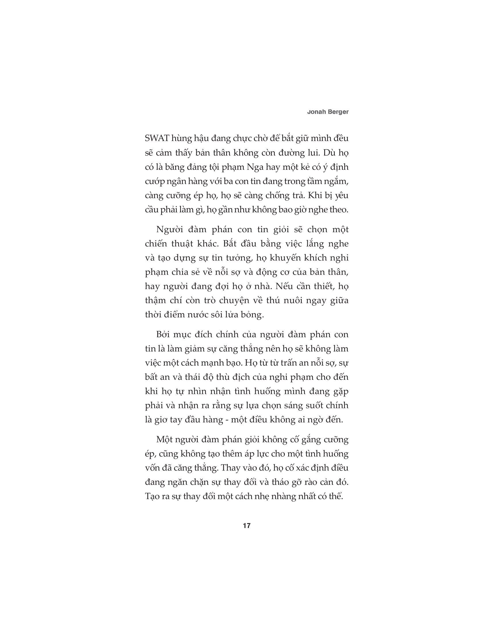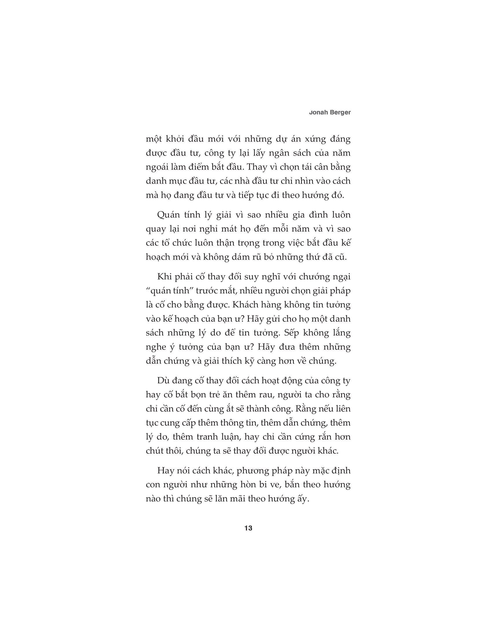 Xuyên suốt cuốn sách này, người đọc thấy được các phương pháp hiệu quả nhất để thay đổi. Hiểu được làm cách nào, khi nào và tại sao con người lại xoay chuyển niềm tin của họ, thay đổi hành động, tiếp nhận những quan điểm mới mẻ và khác biệt hơn.