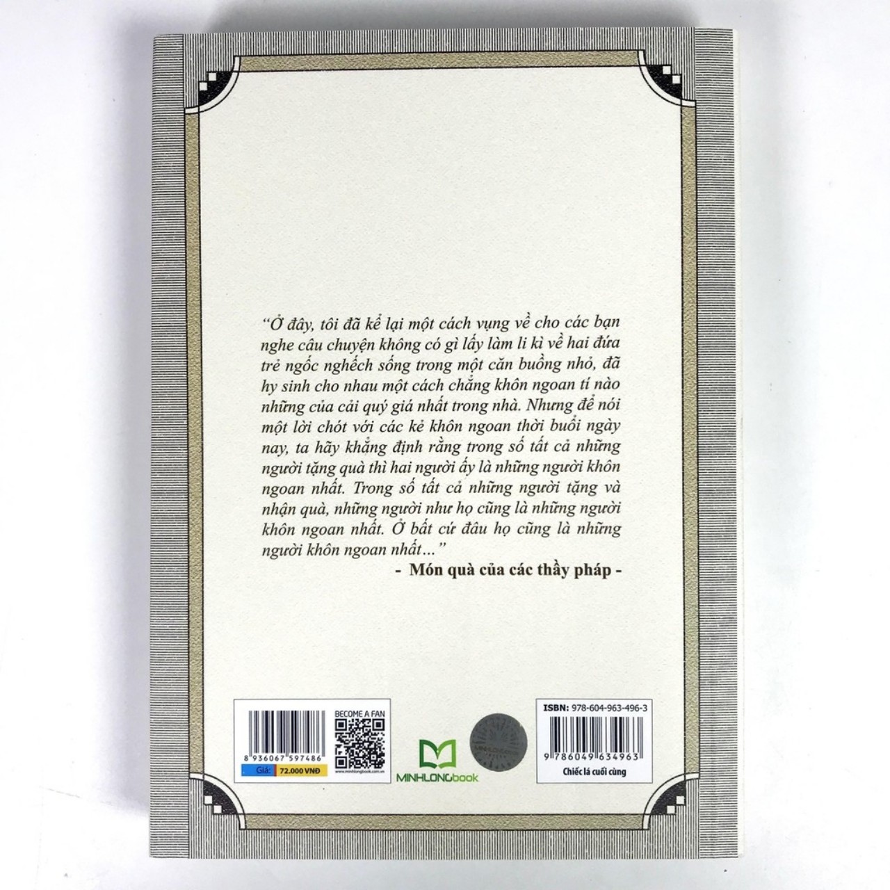 CHIẾC LÁ CUỐI CÙNG (TUYỂN TẬP TRUYỆN NGẮN O. HENRY)Mã sản phẩm: 8936067597486Tác giả : tacgia_O. HenryNXB: Văn họcKích thước : 14.5x20.5 cmNăm xuất bản : 2017Số trang : 336Khối lượng : 308 gramsBìa : ...