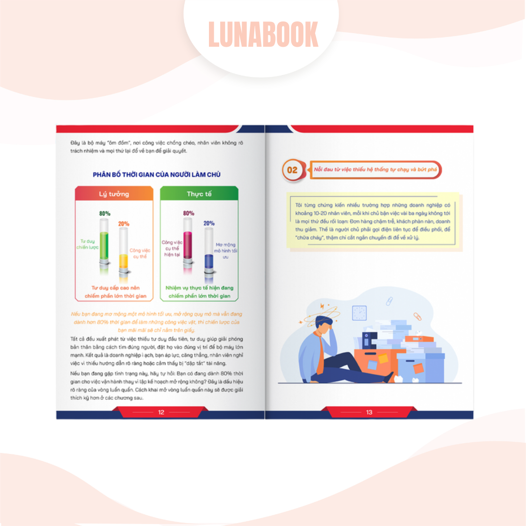 - Cuốn sách cung cấp những chiến lược thực tiễn để phân vai rõ ràng Sếp – Tướng – Binh, đồng thời xây dựng một hệ thống giao việc – kiểm soát – kế thừa hiệu quả. Nhờ đó, doanh nghiệp có thể vận hành trơn tru và bền vững, giúp người lãnh đạo thoát khỏi công việc chi tiết để tập trung vào chiến lược phát triển dài hạn.