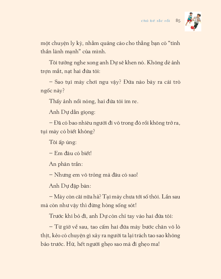 Chú bé rắc rối là câu chuyện về đôi bạn “cùng tiến” An và Nghi. Nghi học giỏi và là một tấm gương sáng bao nhiêu thì An lại ham chơi và lười học bấy nhiêu, và những câu chuyện tréo ngoe bắt đầu xảy ra khi Nghi phải trở thành gia sư bất đắc dĩ của “chú bé rắc rối” An. Với giọng văn nhẹ nhàng và cách kể chuyện hài hước, nhà văn Nguyễn Nhật Ánh một lần nữa đưa độc giả đi qua nhiều tình huống dở khóc dở cười xoay quanh cuộc sống của hai cậu học trò đáng yêu với những nút thắt và mở tài tình, cùng những bất ngờ thú vị gây tò mò đến từ các nhân vật gần gũi với An, Nghi. Chú bé rắc rối là một lát cắt về thời học trò “nhất quỷ nhì ma” với những kỷ niệm khó quên trong mỗi người.