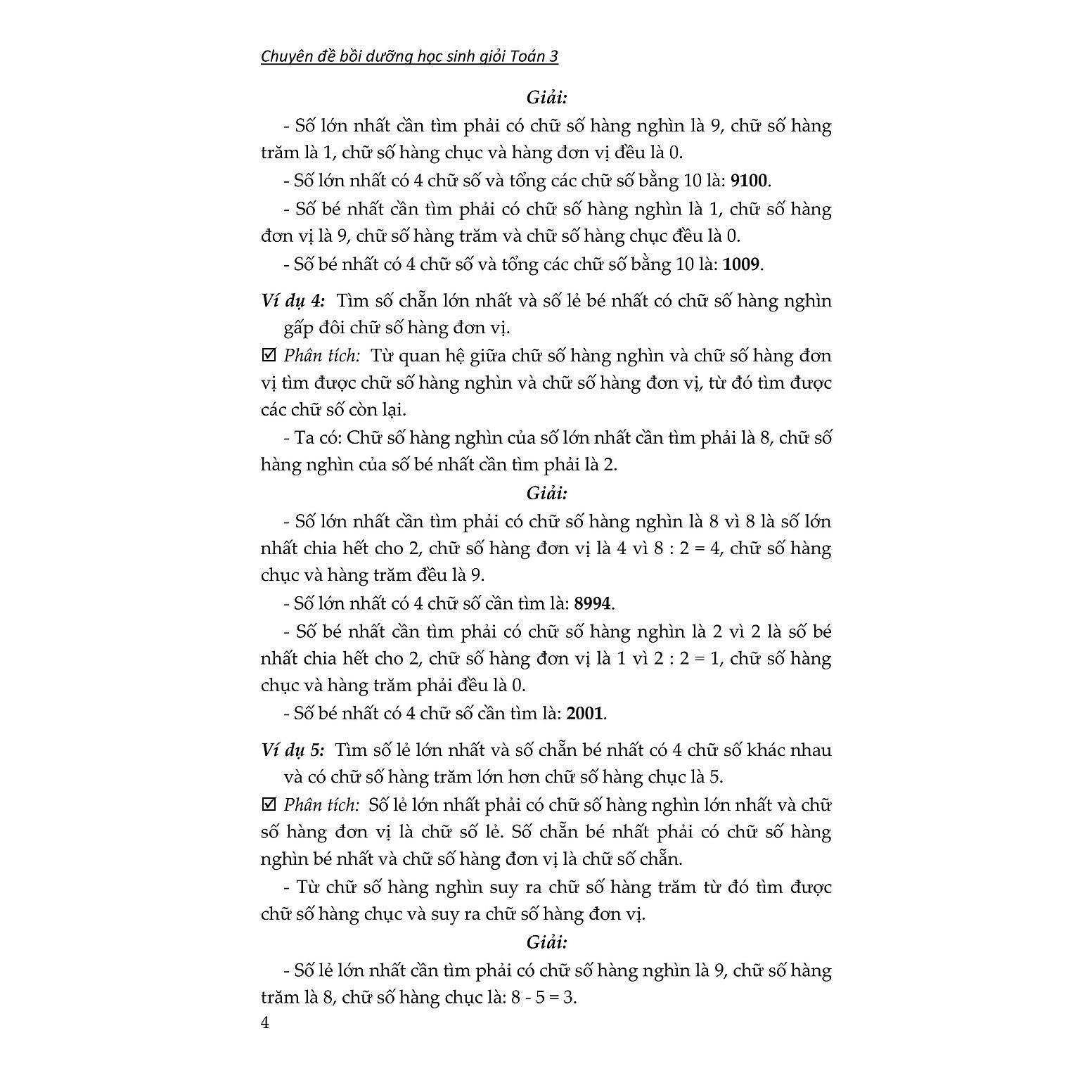 Cuốn Chuyên Đề Bồi Dưỡng Học Sinh Giỏi Toán 3 nhằm giúp học sinh lớp 3 phát triển và nâng cao kiến thức môn toán.Cuốn sách là Cuốn “Chuyên đề bồi dưỡng học sinh giỏi Toán 3” một tài liệu tham khảo cho giáo viên cũng như các bậc phụ huynh trong quá trình hướng dẫn học sinh làm thêm các bài tập trong mỗi tuần. Cuốn sách được biên soạn theo nội dung chương trình sách giáo khoa Toán 3 - CTGDPH 2018 có thể dùng chung cho tất cả các bộ sách hiện hành. Với các chủ đề khác nhau , mỗi năm gồm nhiều chuyên đề, mỗi tuần một chuyên đề giúp học sinh ôn luyện, củng cố và khắc sâu kiến thức cơ bản.
