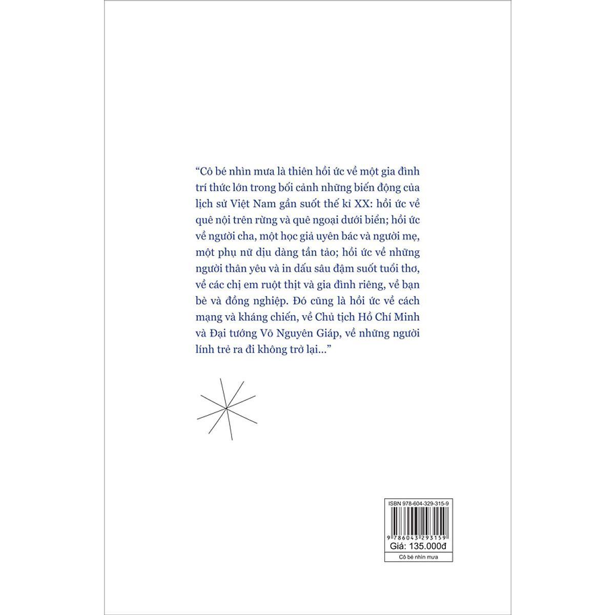 Cô bé nhìn mưa là thiên hồi ức về một gia đình trí thức lớn trong bối cảnh những biến động của lịch sử Việt Nam gần suốt thế kỷ XX: Hồi ức về quê nội trên rừng và quê ngoại dưới biển; Hồi ứ...