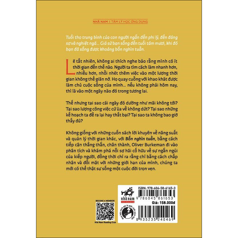 Tuổi thọ trung bình của con người ngắn đến phi lý, đến đáng sợ và nghiệt ngã… Giả sử bạn sống đến tuổi tám mươi, khi đó bạn đã sống được khoảng bốn nghìn tuần.