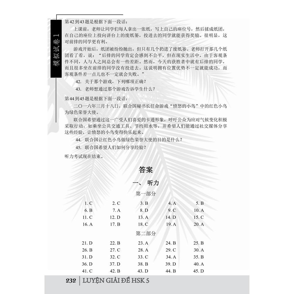 1.Luyện giải đề HSK cấp 5 Công ty phát hành Công ty TNHH Giáo Dục Hải Hà Ngày xuất bản 2020-12-31 08:00:00 Loại bìa Bìa mềm Số trang 360 Nhà xuất bản Đại Học Sư