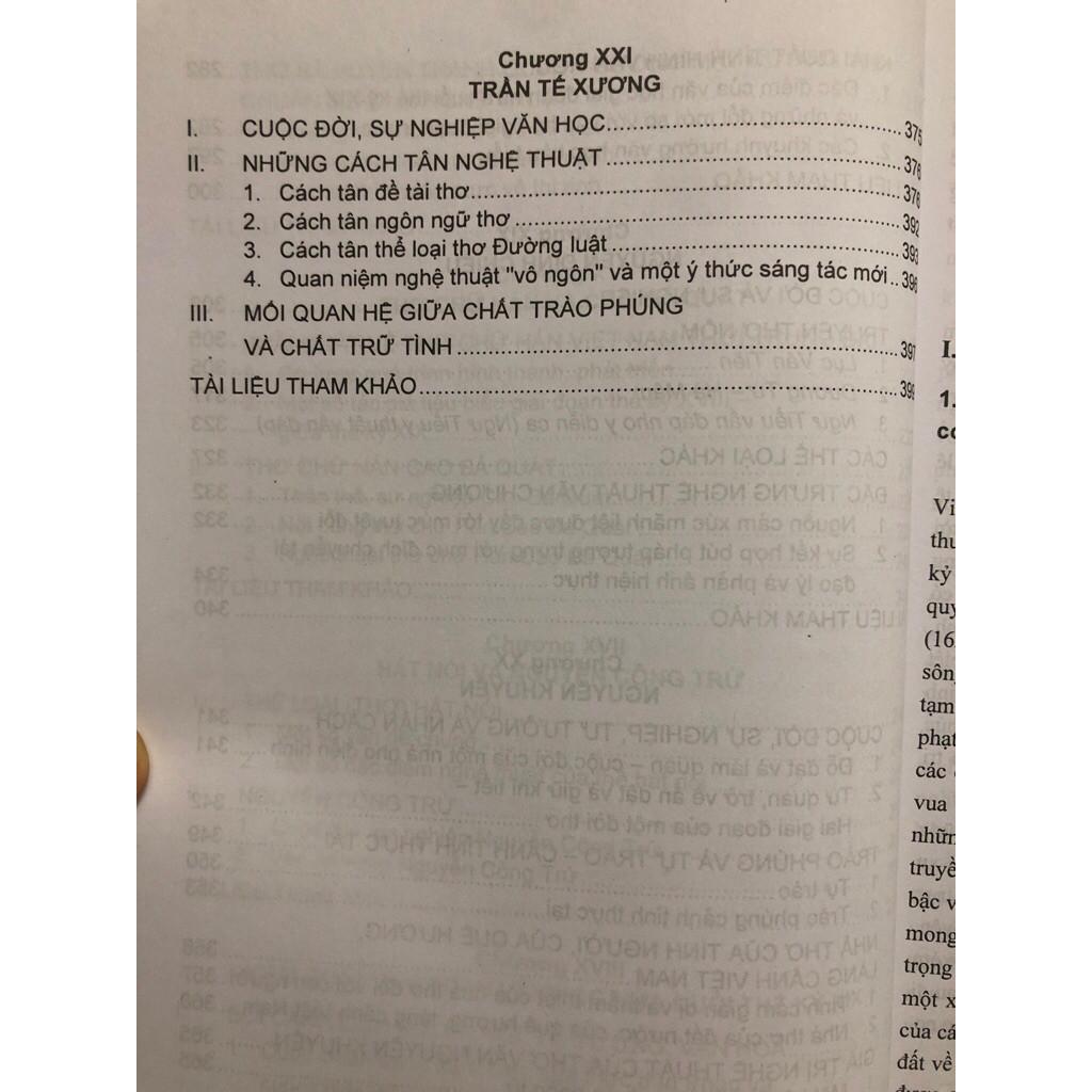 Nội dung gồm có: Chương I. Khái quát văn học trung đại Việt Nam Chương II. Văn học thế kỉ X- thế kỉ XIV Chương III. Văn học thế kỉ XV- thế kie XVII Chương IV. Nguyễn Trãi Chương V. Thớ Nôm Đường luật và Hồng Đức quốc âm thi tập Chương VI. Nguyễn Bỉnh Khiêm Chương VII. Thể loại truyền kì và Truyền kì mạn lục Chương VIII. Khái quát giai đoạn văn học từ thế kỷ XVIII đến nữa đầu thế kỷ XIX Chương IX. Tiểu thuyết chương hồi và Hoàng Lê nhất thống chí Chương X. Thể ký và Thượng kinh ký sự Chương XI. Thể ngâm khúc và Chinh phụ ngâm khúc Chương XII. Truyện thơ Nôm Chương XIII. Nguyễn Du và Đoạn trương tân thanh Chương XIV. Hồ Xuân Hương Chương XV. Bà Huyện Thanh Quan Chương XVI. Thơ chữ Hán và Cao Bá Quát Chương XVII. Hát nói và Nguyễn Công Trứ Chương XVIII. Khái quát giai đoạn văn học nữa cuối thế kỷ XIX Chương XIX. Nguyễn Đình Chiểu Chương XX. Nguyễn Khuyến Chương XXI. Trần Tế Xương Tác giả: Lã Nhâm Thìn, Vũ Thanh, Đinh Thị Khang, Trần Thị Hoa Lê, Nguyễn Thị Nương, Nguyễn Thanh Tùng Số trang: 224+400 Xuất bản: 2025 Nhà xuất bản: Giáo dục Việt Nam Công ty phát hành: Công ty CP Sách Đại học - Dạy nghề NTBOOKS Chắp cánh tri thức - Vững bước tương lai