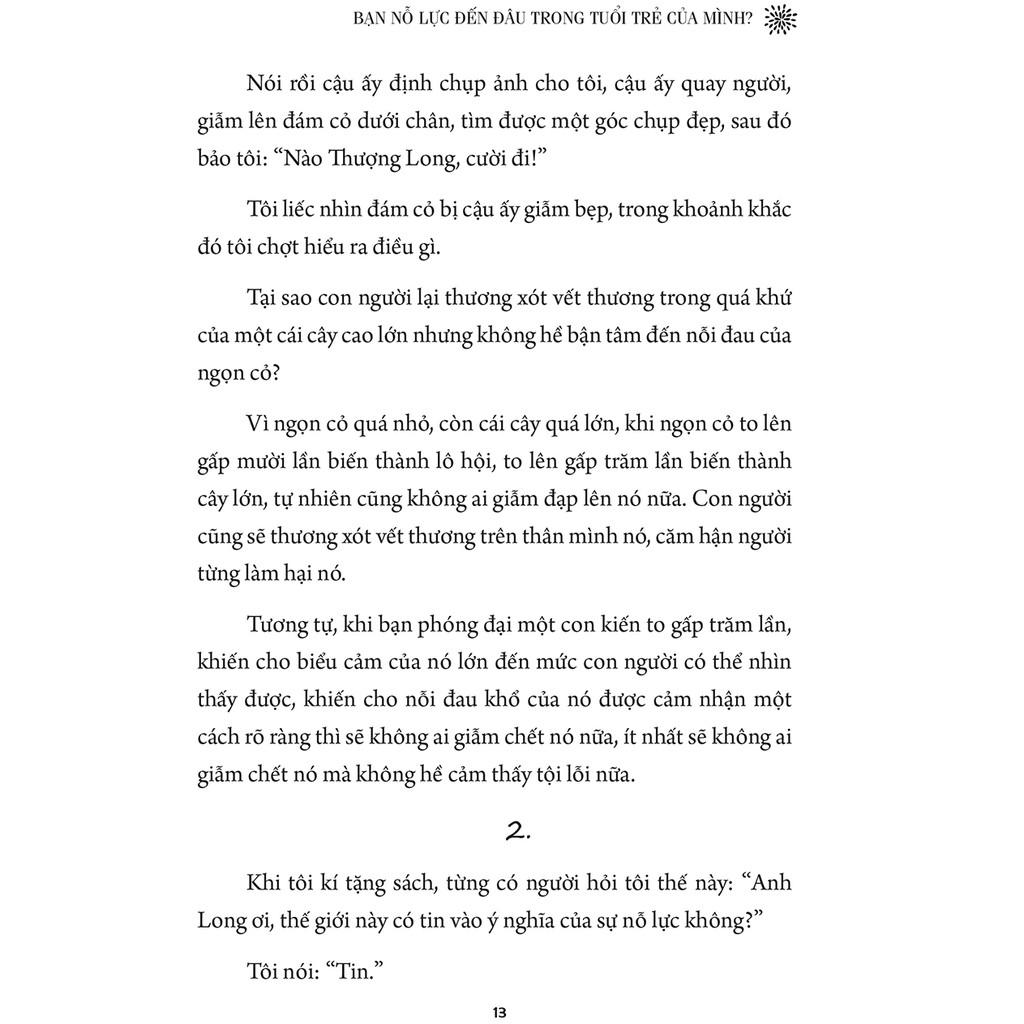 Mua tại TiktokSÁCH: ĐẠI HỌC KHÔNG LẠC HƯỚNG Tác giả : Lý Thượng Long Dịch giả :Phương Linh Nhà xuất bản: Nhà xuất bản Thanh Niên Kích thước : 14.5 x 20.5 cm Năm xuất bản : 2019 Số trang : 288 Khối lượng : 340 grams Bìa : Mềm - tay gập Biến mình thành một thanh niên SLASH, tại sao không? Thanh niên “slash” là từ dùng để chỉ những người trẻ làm nhiều nghề nghiệp hay một con người làm việc tự do, kiếm tiền bằng những kỹ năng khác nhau. Vậy, vì sao bạn nên trở thành một thanh niên slash? Tất nhiên, cũng có nhiều kiểu thanh niên slash khác nhau mà tiêu biểu nhất là 4 kiểu được Lý Thượng Long đề cập và phân tích kỹ trong cuốn sách. Đi kèm với đó, bạn đọc cũng nhận được những lời khuyên thiết thực, hữu ích, có 1-0-2 mà bạn chắc chắn không nên bỏ lỡ.