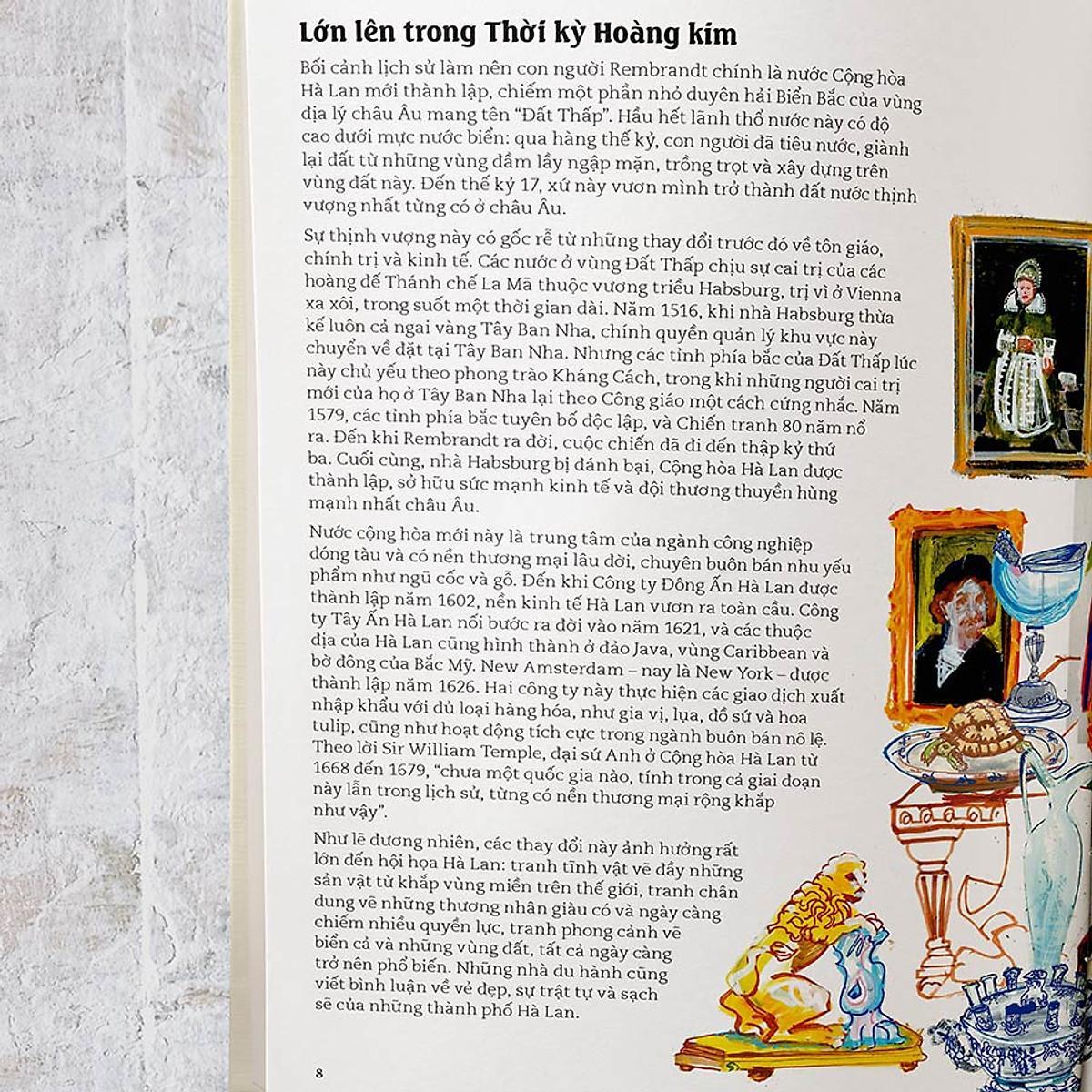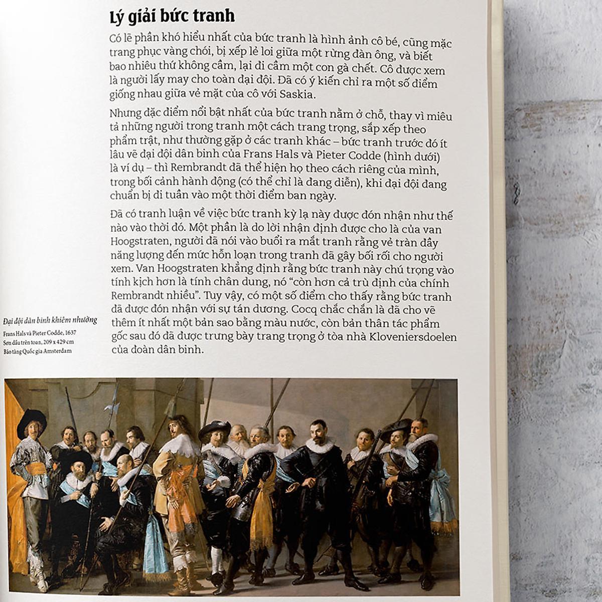 Trong cuốn sách này, bên cạnh câu chuyện về cuộc đời Rembrandt, bạn sẽ được ngắm nhìn từ những bức tranh thuở ban đầu, đến những sáng tác đỉnh cao của ông, như bức Chân dung tự họa với đôi mắt mở to với cảm xúc mãnh liệt tuôn chảy trong nét vẽ, được thực hiện trên kích thước chỉ lớn hơn con tem bưu chính một chút, hay bức Đội tuần đêm gây sửng sốt đương thời, mà cho đến nay vẫn còn là một tuyệt phẩm khiến công chúng phải tò mò và ngưỡng mộ khi thưởng ngoạn…