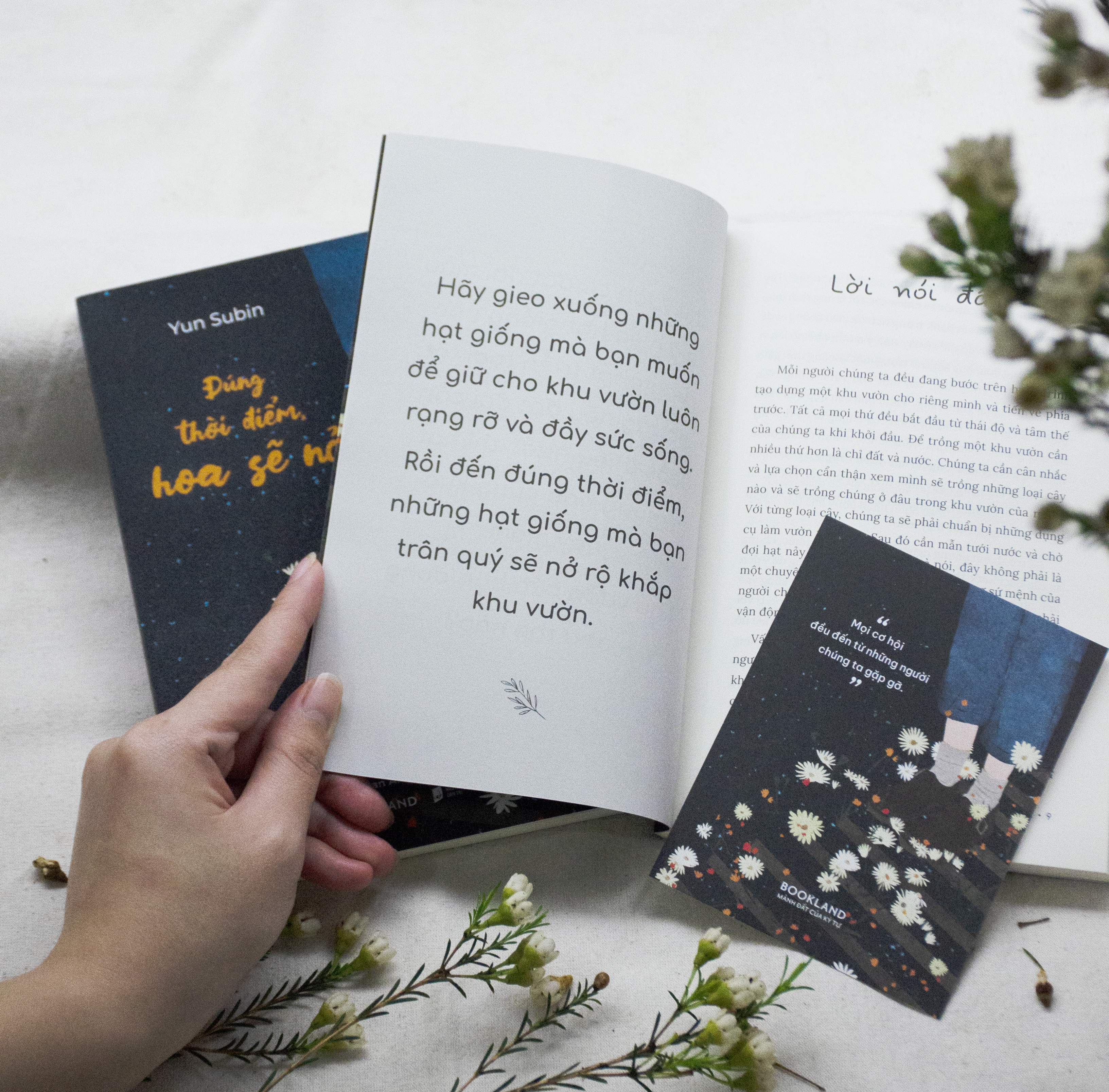 Thế nhưng, mong bạn hãy nhớ rằng: Bất cứ ai trong chúng ta cũng có một thời điểm của riêng m.ình. Đây là thông điệp mà tác giả Yun Subin muốn gửi gắm tới độc giả xuyên suốt cuốn sách Đúng thời điểm, hoa sẽ nở. Có thể các hạt giống trong khu vườn của bạn còn đang bận vươn rễ cắm sâu xuống đất nên chưa nảy mầm, đơm hoa, nhưng tất cả những gì bạn cần làm chỉ nên là kiên nhẫn tưới nước, bón phân cho chúng mà thôi. Bởi vì, mỗi sự nỗ lực bạn gieo xuống cũng có thời điểm của riêng chúng, đến đúng thời điểm, chúng sẽ kết thành quả ngọt, và bạn sẽ đạt được những thành tựu xứng đáng với mỗi giọt mồ hôi đã tuôn rơi.