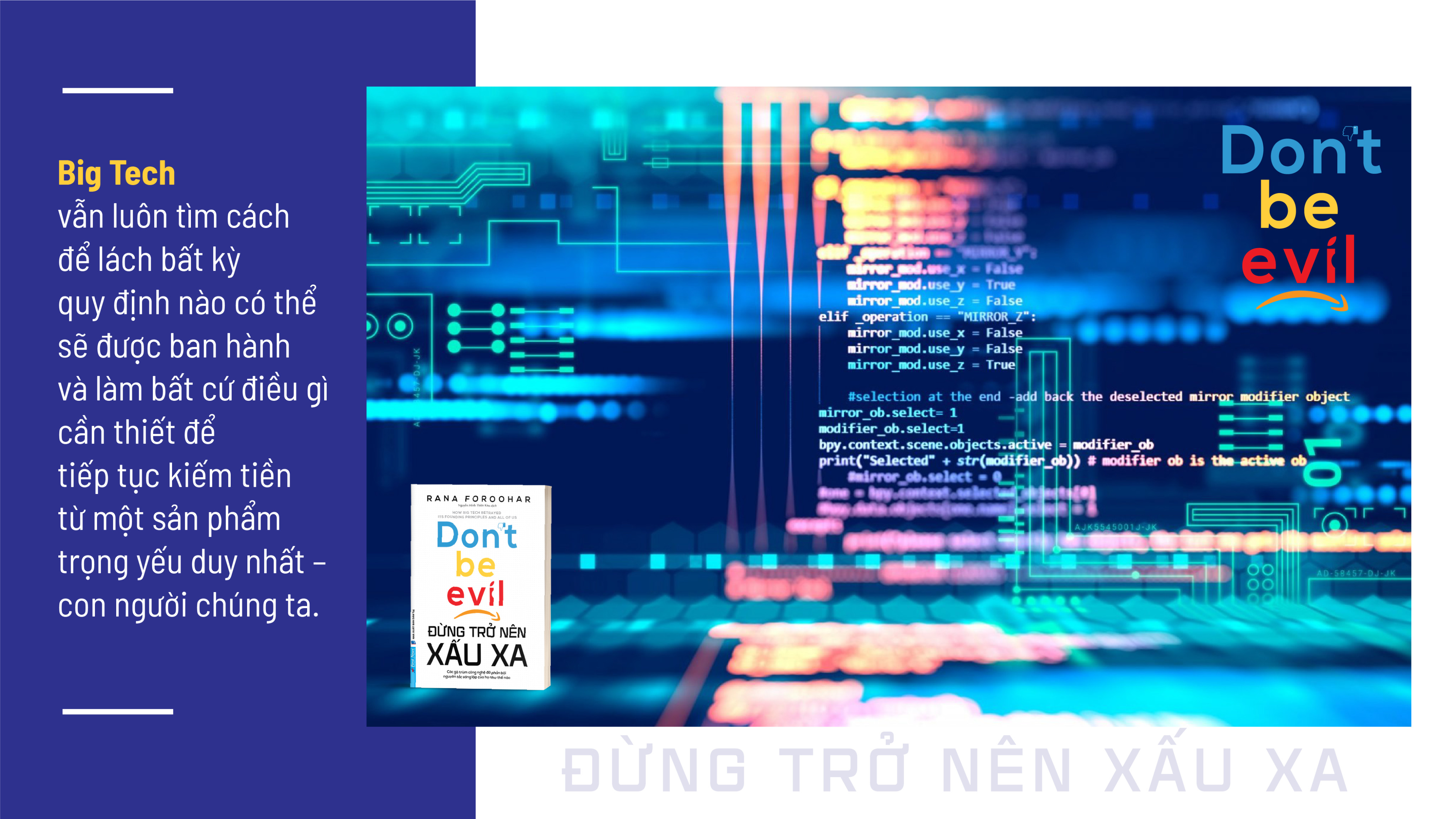 Sách Đừng Trở Nên Xấu Xa - First News ------------ Số trang:464 Kích thước:14.5 x 20.5 cm NXB:Dân Trí Biên dịch: Nguyễn Minh Thiên Kim Tác giả: Rona Foroohar ĐỪNG TRỞ NÊN XẤU