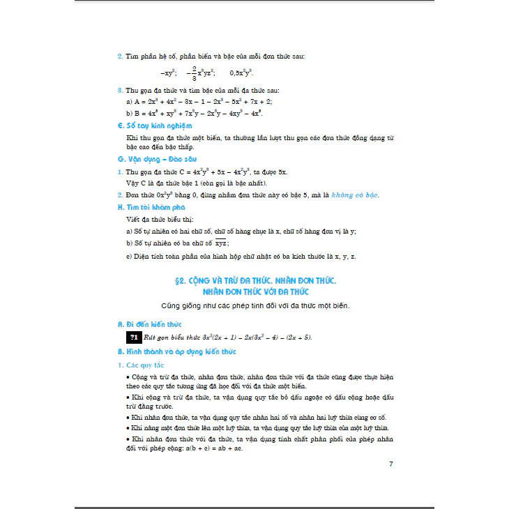 Các bài tập trong sách thường không khó, nhưng đều có tình huống, giúp các em nắm vững kiến thức, rèn luyện kĩ năng, trau dồi phương pháp. Các em nên tự suy nghĩ và giải chúng. Các bài tập này sẽ giúp các em nhiều điều, và chúng còn có ích ngay cả khi các em đã rời trường. Tất cả các kiến thức của môn Toán, cũng như của các môn học khác, đều sẽ rất cần thiết cho các em, nếu các em muốn trở thành người làm chủ cuộc sống của mình.
