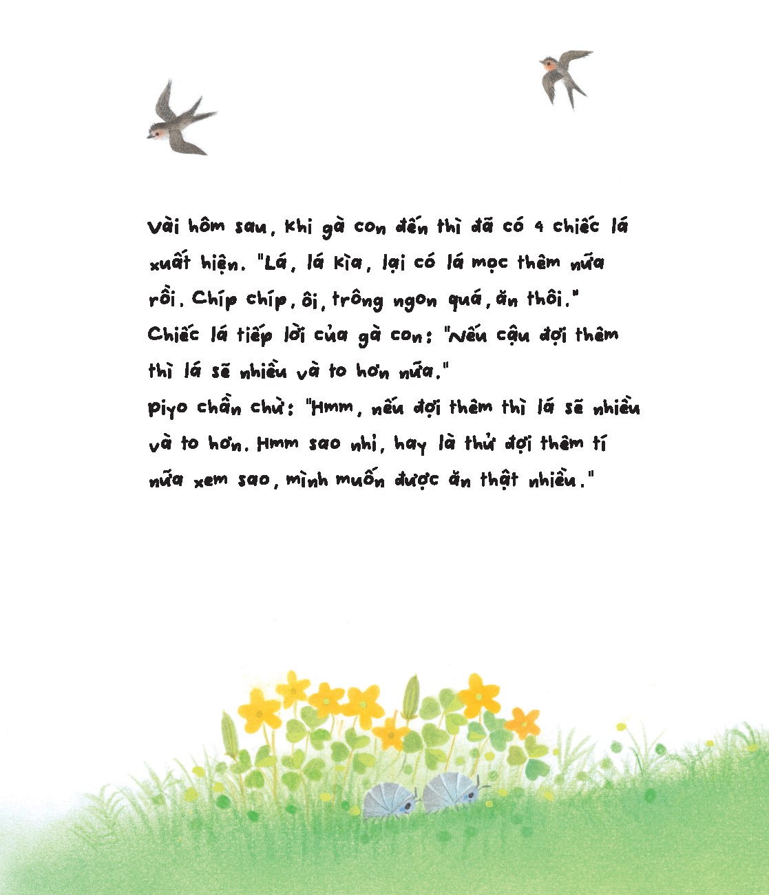 Mua tại TiktokTóm tắt nội dung Gà con trở thành bạn tốt với hoa hướng dương xinh đẹp. Thế nhưng khi mùa hè qua đi, hoa hướng dương cũng rũ xuống và nói lời tạm biệt với Gà con. Quyển sách sẽ cho bé suy ngẫm về tình bạn và cuộc sống.