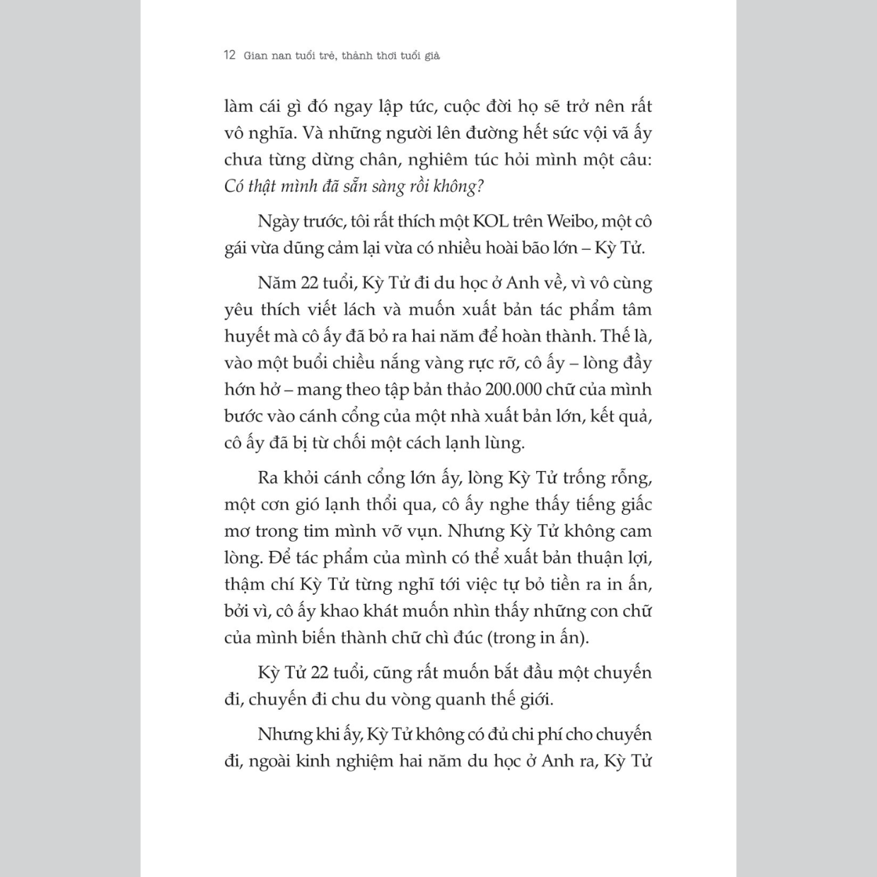 Cuốn sách Gian nan tuổi trẻ, thảnh thơi tuổi già được viết nên để tạo động lực cho bạn mỗi ngày, hy vọng sẽ tiếp thêm lửa cho trái tim đang khao khát được thành công, cho những tâm hồn đang sợ thất bại, cho những ai đến hai chữ “dám làm” cũng chưa nghĩ đến. Thanh xuân ai cũng mơ mộng, cũng mong muốn có cuộc sống an nhàn, nhưng “Gian nan tuổi trẻ, thảnh thơi về già” như một cú tát vào giấc mơ hoang đường, cuộc đời không giống như trong phim, bạn không thể thành công sau một đêm mà nhờ nỗ lực từng ngày.