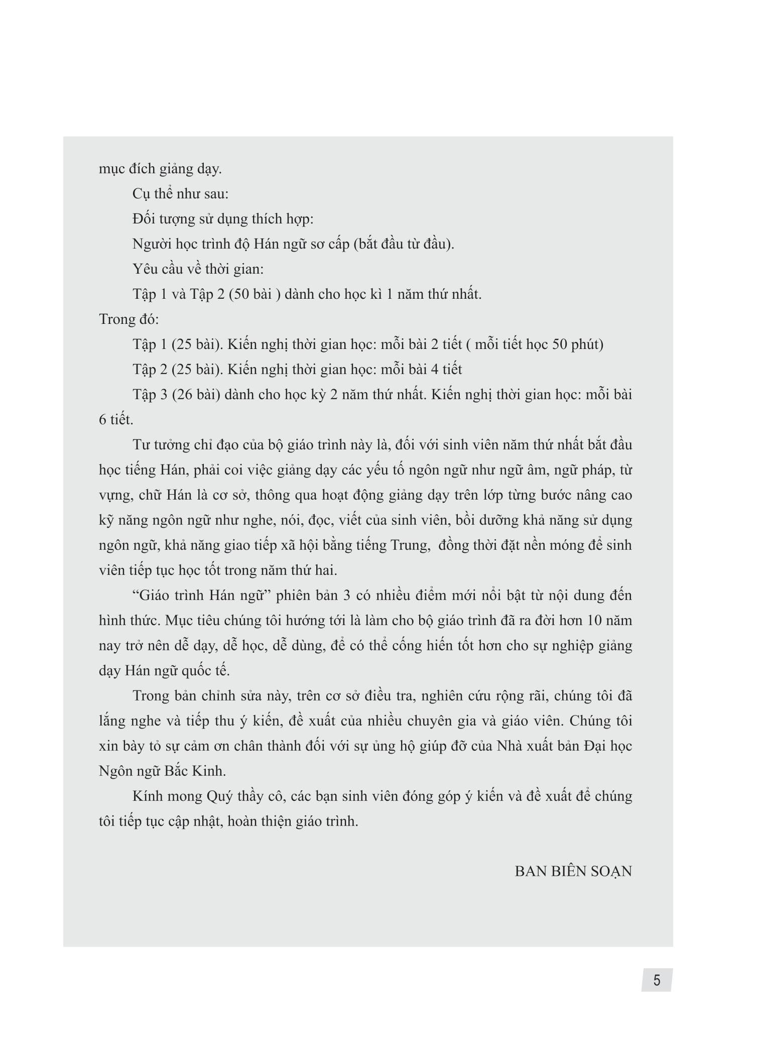 Giáo Trình Hán Ngữ 1 - Tập 1 - Quyển Thượng Các bài học trong “Giáo trình Hán ngữ 1” Tập 1 được thiết kế gồm 5 phần: 1. Bài đọc, 2. Từ mới, 3. Chú thích, 4. Ngữ âm, Ngữ pháp, 5. Luyện tập.