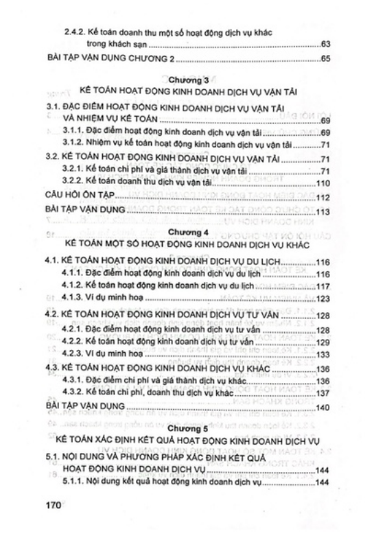 HH Giáo trình gồm 5 chương, khái quát được những nội dung cơ bản về tổ chức công tác kế toán trong doanh nghiệp dịch vụ, kế toán một số nghiệp vụ kinh doanh dịch vụ đặc thù và kế toán xác định kết quả hoạt động kinh doanh dịch vụ, nhằm phục vụ công tác giản giảng dạy, học tập môn học này tại các trường Đại học, Cao đẳng chuyên ngành Kế toán. Đồng thời, đây cũng là tài liệu thiết thực đối với các cán bộ quản lý kinh tế và nhẹ những người quan tâm đến công tác kế toán tại các doanh nghiệp kinh doanh dịch vụ. Đây ch