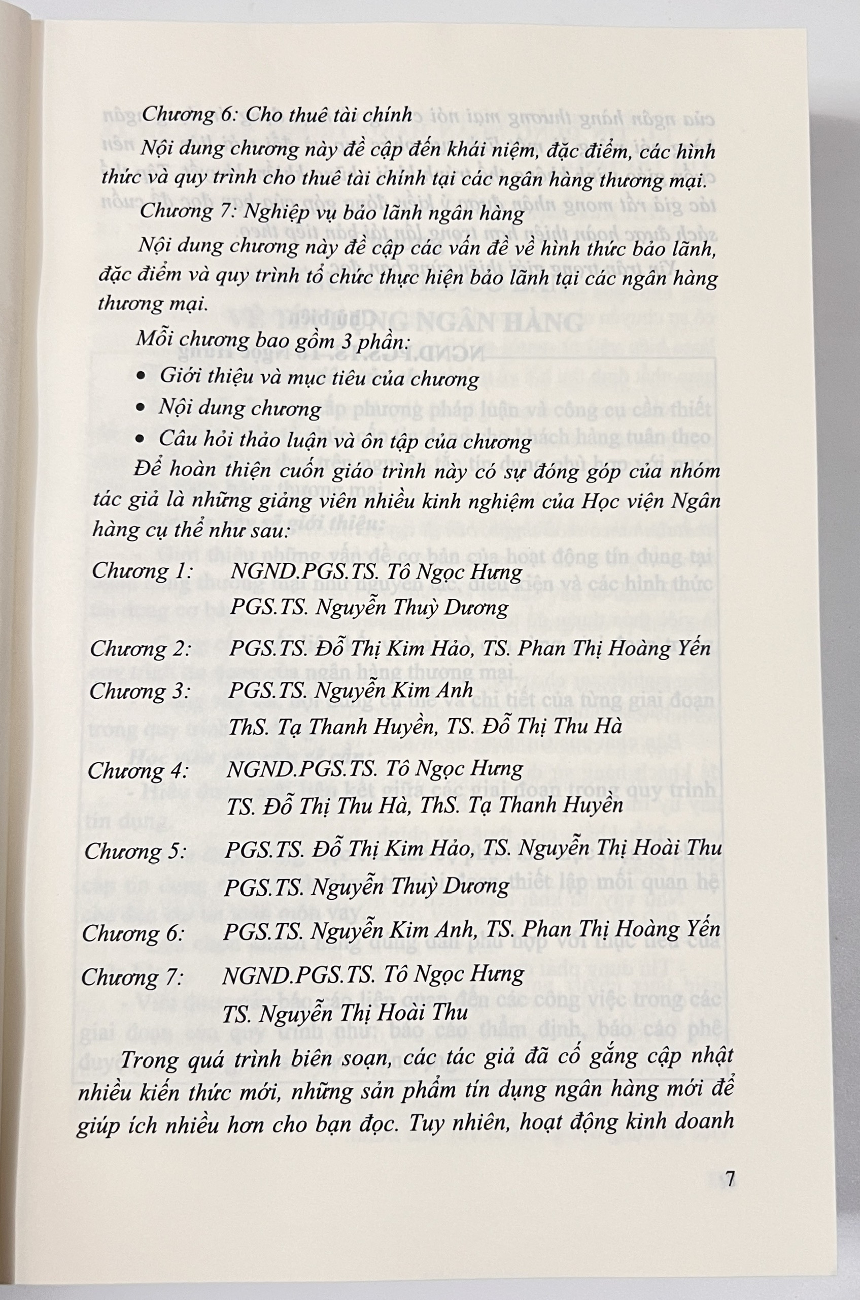 Giáo trình này có một cách tiếp cận đặc biệt, dựa trên sự tổng hợp của nhiều khối kiến thức về kinh tế, kế toán tài chính, luật kinh doanh và có sự găn kết với các quy định trong hoạt động tín dụng của các ngân hàng Việt Nam. Chúng tôi nhận thức rằng người đọc sẽ có những kiến thức nền tảng cũng như định hướng nghề nghiệp khác nhau, một số sẽ trở thành những chuyên gia trong lĩnh vực hoạt động tín dụng của ngân hàng thương mại và một số sẽ làm việc ở các bộ phận hỗ trợ tín dụng hoặc các phòng ban chức năng khác nên cuốn sách sẽ hỗ trợ người đọc ở mức độ cần thiết khác nhau. Cuốn giáo trình không chỉ là một tài liệu học tập hữu ích cho sinh viên các trường đại học kinh tế chuyên ngành Ngân hàng mà còn là tài liệu bổ ích cho các bạn đọc muốn trở thành những chuyên viên tín dụng ngân hàng chuyên nghiệp.