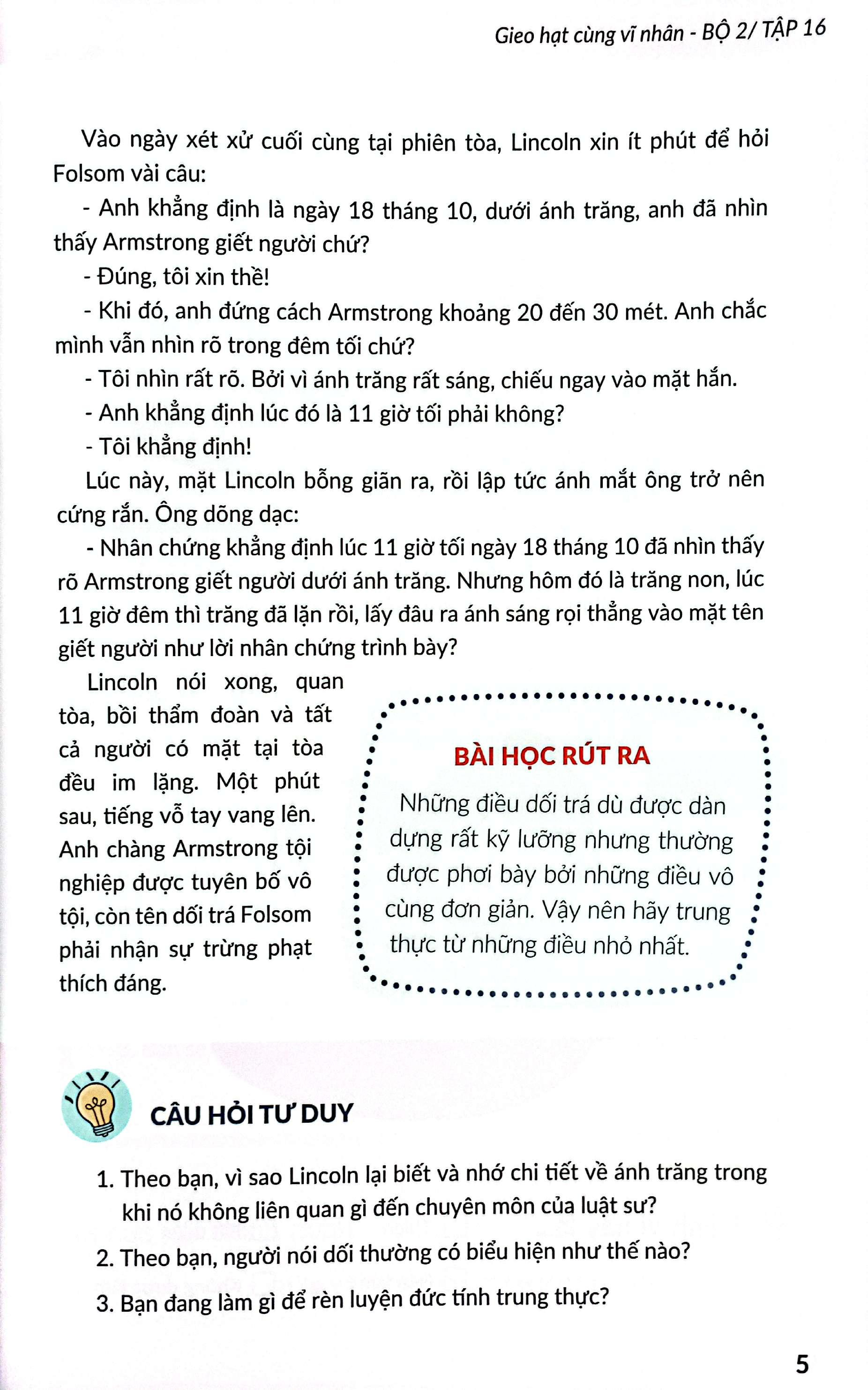 Những tình huống trong gieo hạt cùng vĩ nhân khá đa dạng, thiết thực rất quen thuộc trong đời sống được phân tích sâu sắc nguyên nhân và kết quả rất đơn giản và súc tích, con sẽ hiểu được tiến trình vì sao nguyên nhân gì dẫn đến kết quả của tình huống đó.