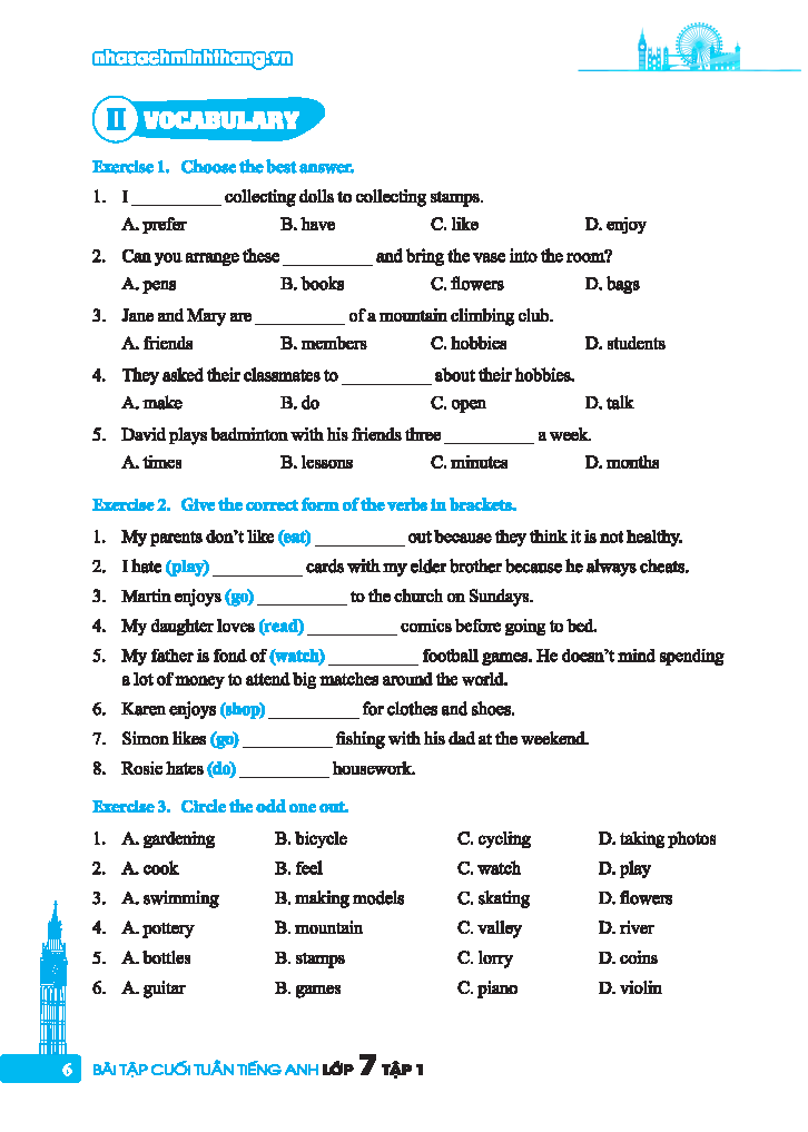 Bài tập tiếng Anh lớp 7 (không đáp án) Sách bài tập tiếng anh lớp 7 được biên soạn dành cho học sinh lớp 7, do Nhà xuất bản Đại học Quốc gia Hà Nội