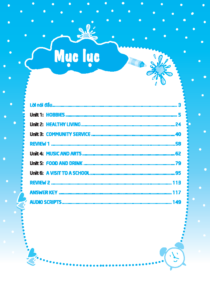 Cuốn sách được biên soạn một cách tỉ mỉ theo chương trình sách giáo khoa Tiếng Anh Global Success và được chia thành hai phần chính: phần bài tập cơ bản và phần bài tập nâng cao. -Phần bài tập cơ bản: được thiết kế để giúp các em củng cố và hiếu sâu hơn về kiến thức tiếng Anh được học trong từng đơn vị bài học trên lớp. Các bài tập ở phần này giúp các em áp dụng những kiến thức đã học vào các tình huống thực tế, từ vựng, ngữ pháp đến rèn luyện các kĩ năng đọc, viết, giao tiếp.
