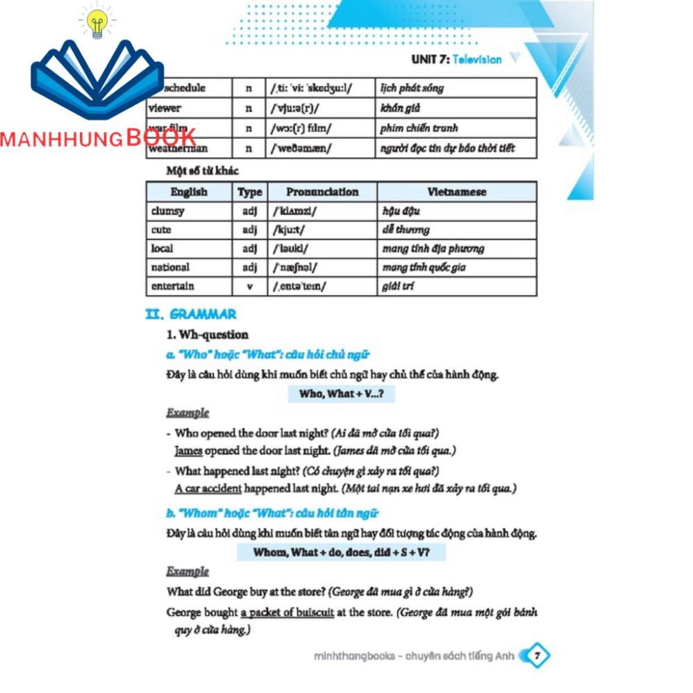Phần Thực hành ngôn ngữ được trình bày một cách chi tiết, khoa học theo ba phần: Từ vựng–Ngữ âm–Ngữ pháp giúp các em vận dụng các kiến thức trong phần Lý thuyết.