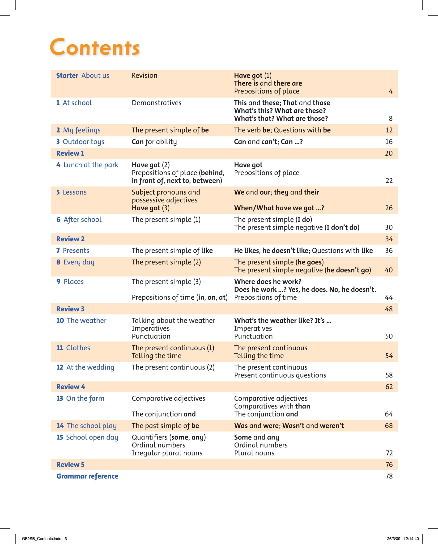 - Unit 10: The weather – Miêu tả thời tiết, mệnh lệnh thức và dấu câu.