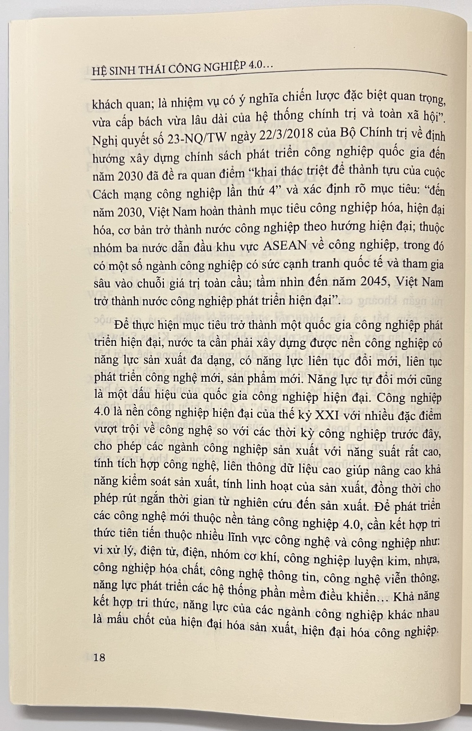 Bước vào kỷ nguyên phát triển vũ bão của cuộc Cách mạng công nghiệp 4.0 (CMCN 4.0), là một quốc gia đang phát triển năng động và tích cực, Việt Nam có cơ hội rất lớn để có thể rút ngắn khoảng cách phát triển với các nước đi trước thông qua việc nắm bắt và tận dụng tốt nhất những thành quả của cuộc CMCN lần này. Phát triển KHCN làm động lực đẩy mạnh sự nghiệp công nghiệp hóa, hiện đại hóa đất nước là chủ trương xuyên suốt của Việt Nam. Trong những năm gần đây, Đảng và Nhà nước ta đã đưa ra chiến lược dài hạn thúc đẩy phát triển KHCN quốc gia và cơ chế, chính sách hỗ trợ phát triển công nghiệp trong CMCN 4.0.