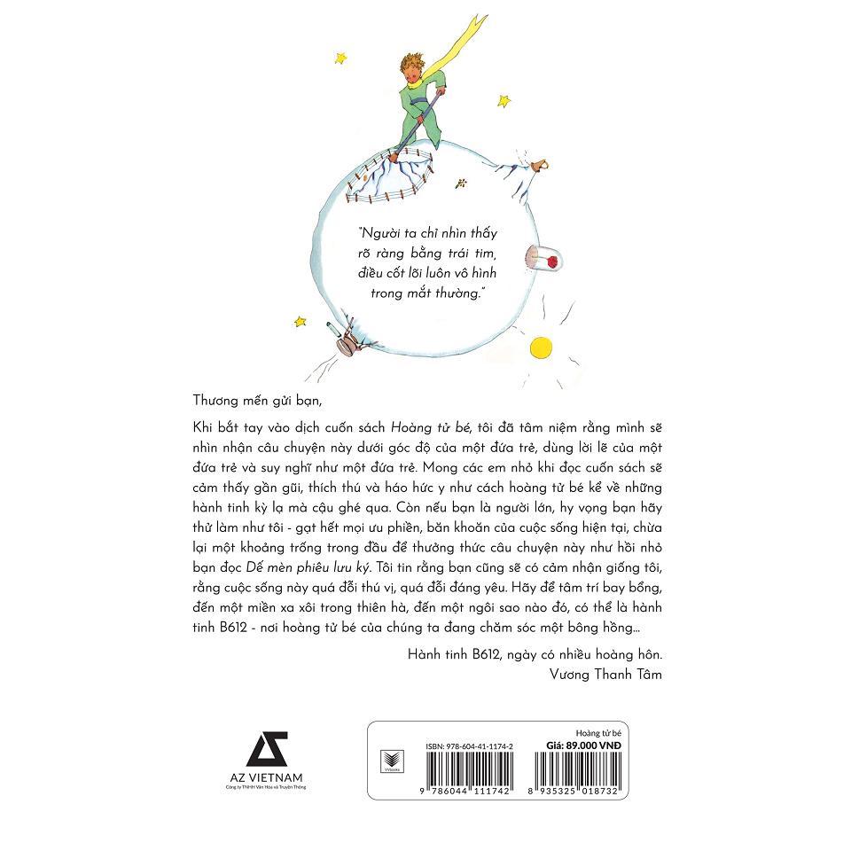 Ấn bản này được dịch giả Vương Thanh Tâm (đã được biết đến với bút danh Sahara Vương) biên dịch theo nguyên tác từ tiếng Pháp – thứ ngôn ngữ xinh đẹp và sống động, kết hợp với những nét vẽ minh họa màu nước của chính tác giả Antoine, đã phần nào khơi gợi lại sức hấp dẫn của “Hoàng Tử Bé” đồng thời đem lại cho độc giả một cảm giác mới mẻ rất khác nhưng cũng không kém phần xúc động.