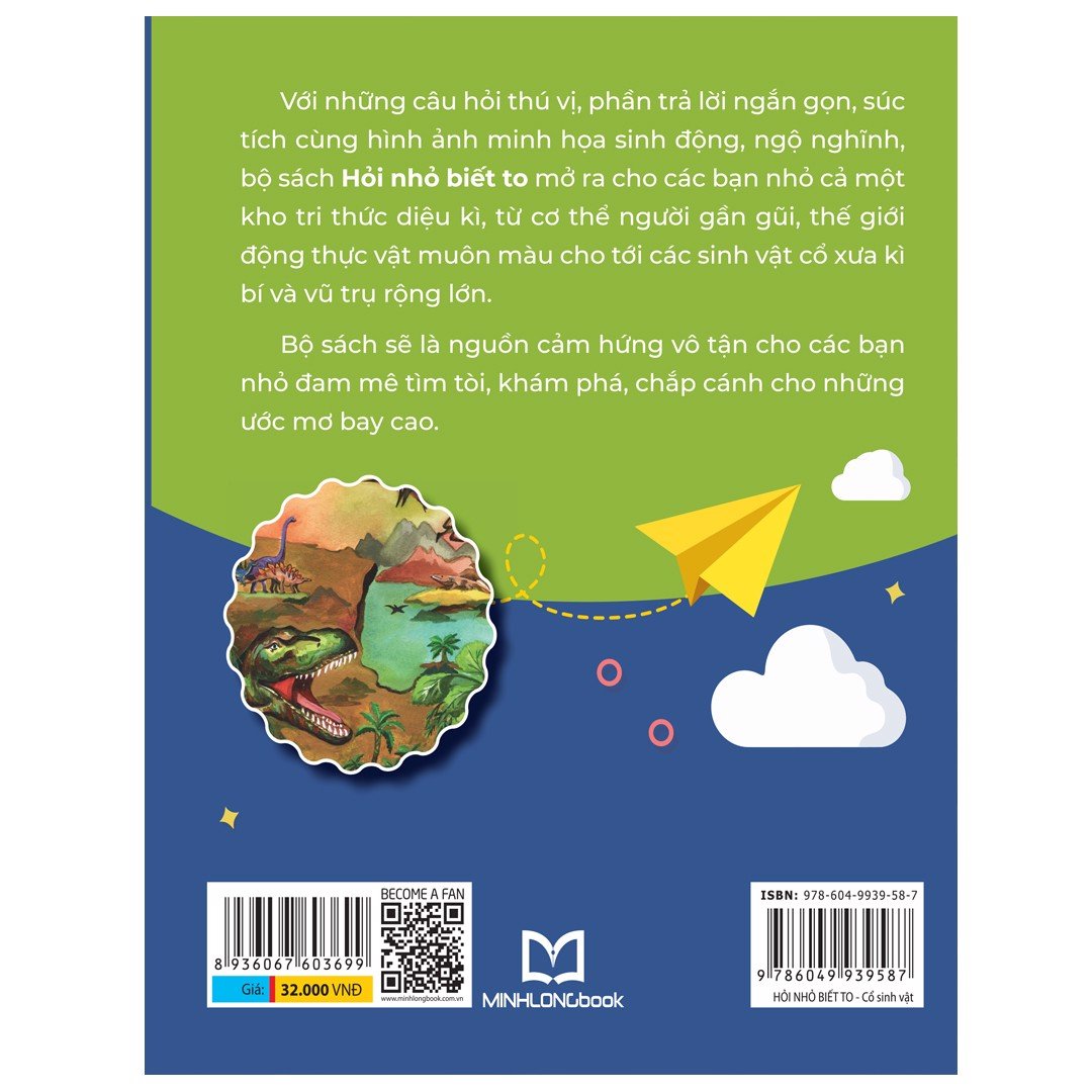 Với những câu hỏi thú vị về cổ sinh vật, phần trả lời ngắn ngon, súc tích cùng hình ảnh minh họa sinh động, ngộ nghĩnh, bộ sách Hỏi nhỏ biết to Cổ sinh vật mở ra cho các bạn nhỏ cả một kho tri thức diệu kì về thế giới cổ sinh vật. Từ nguồn gốc của sự sống, đến những thông tin thú vị về các loài khủng long, hóa thạch, voi ma mú đầy kì bí.